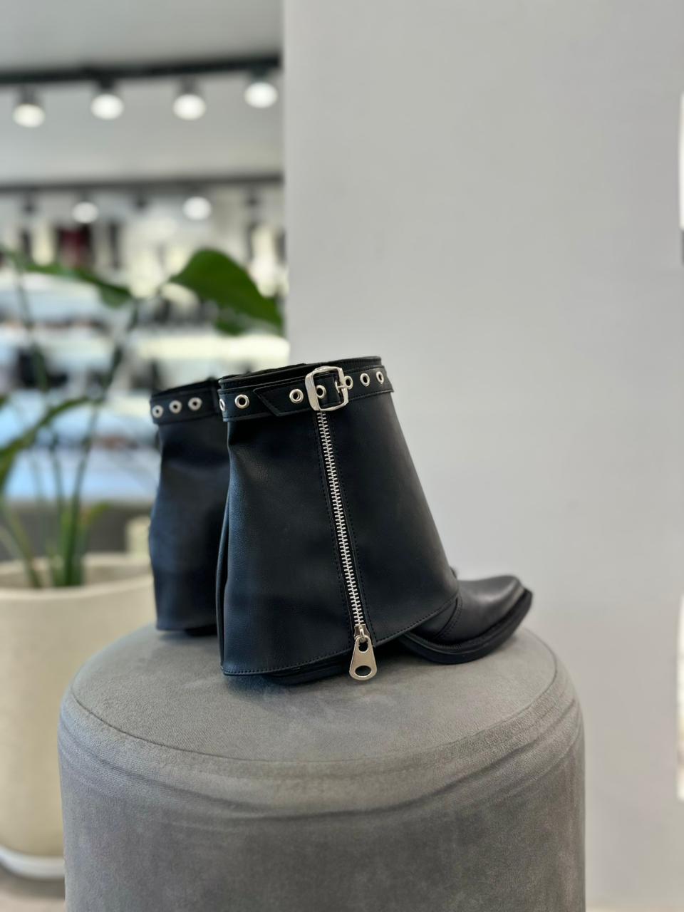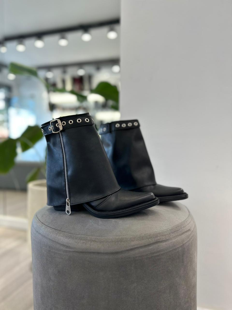 Bota de ecocuero clásica con solapa desmontable.