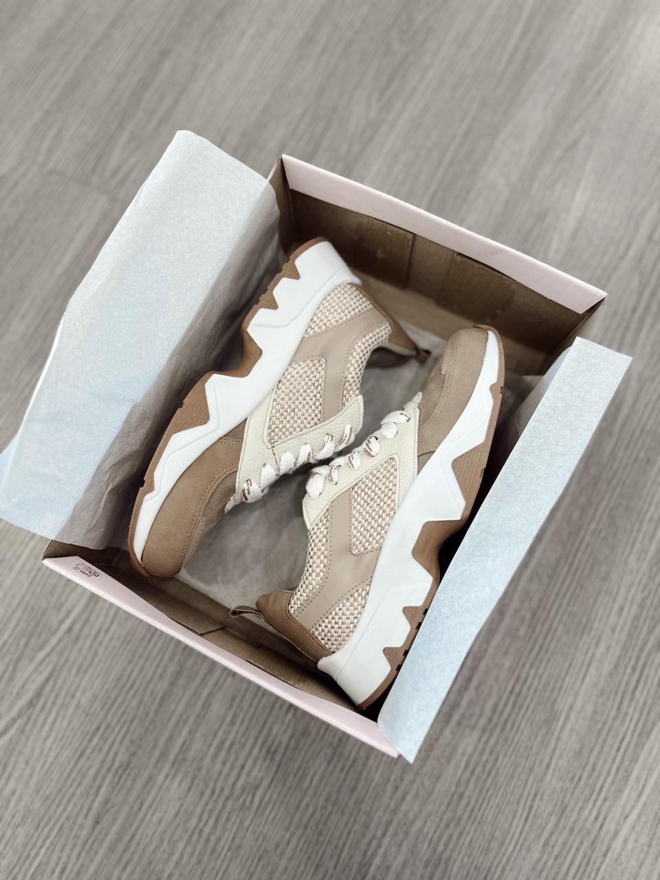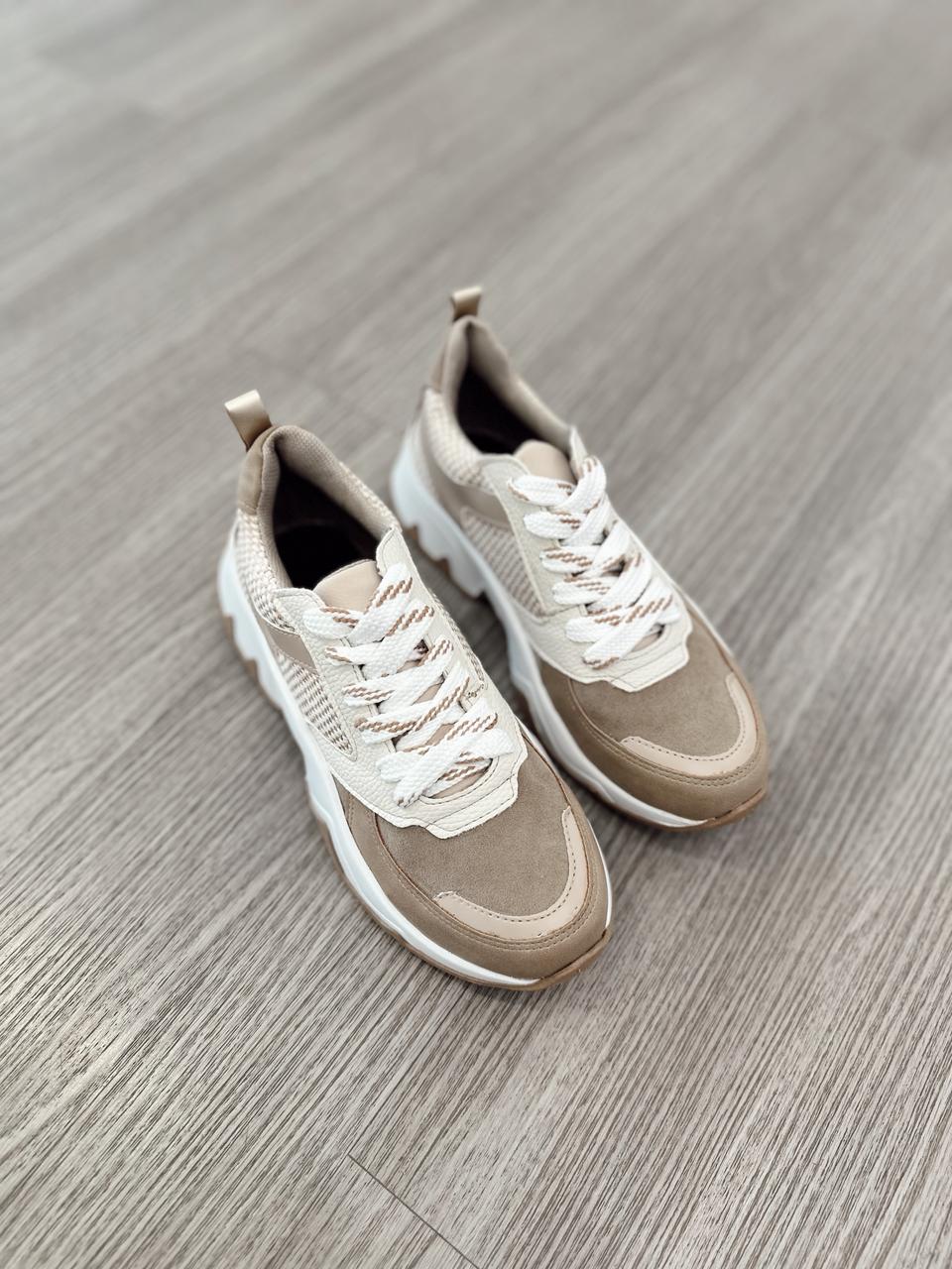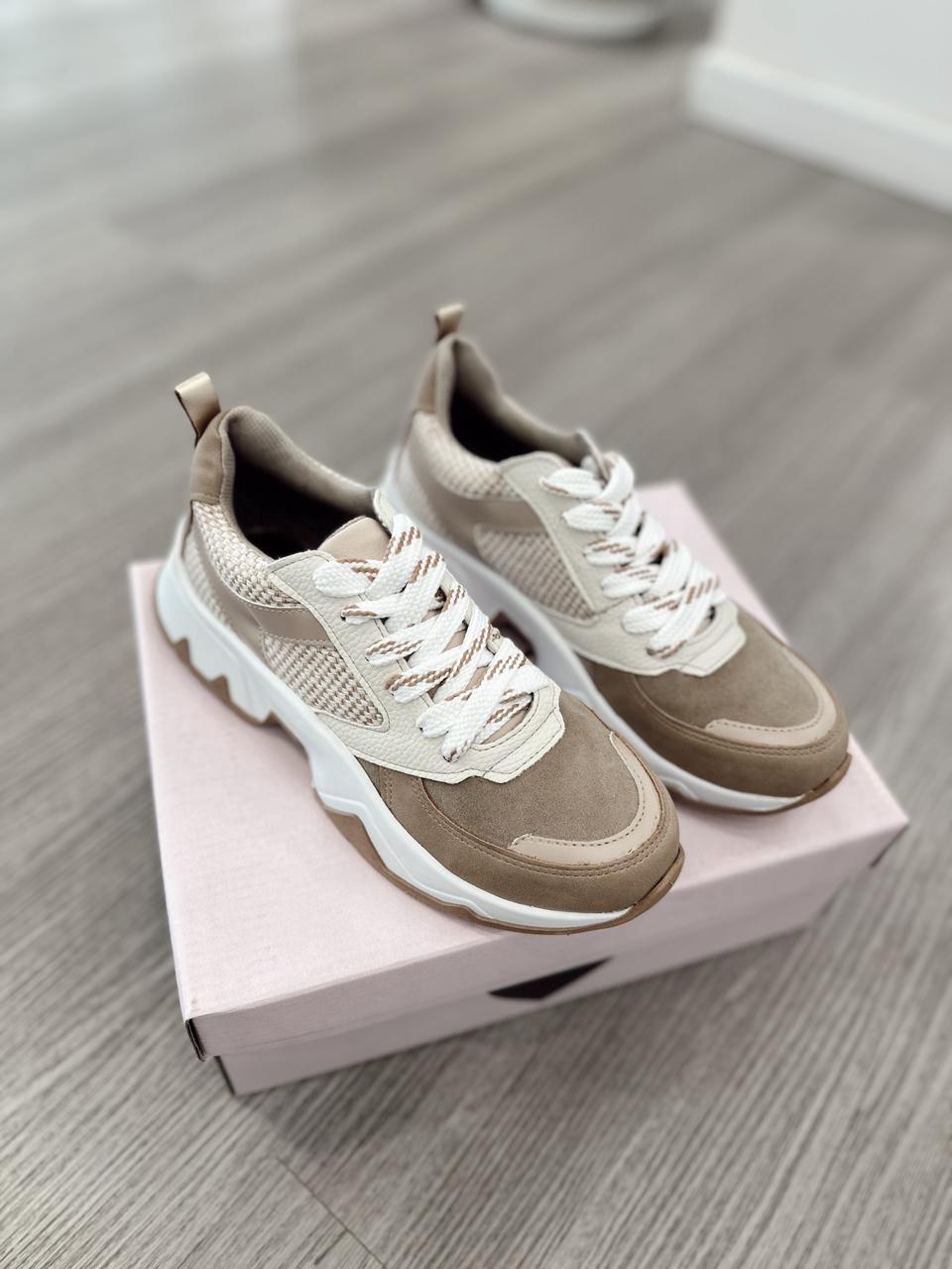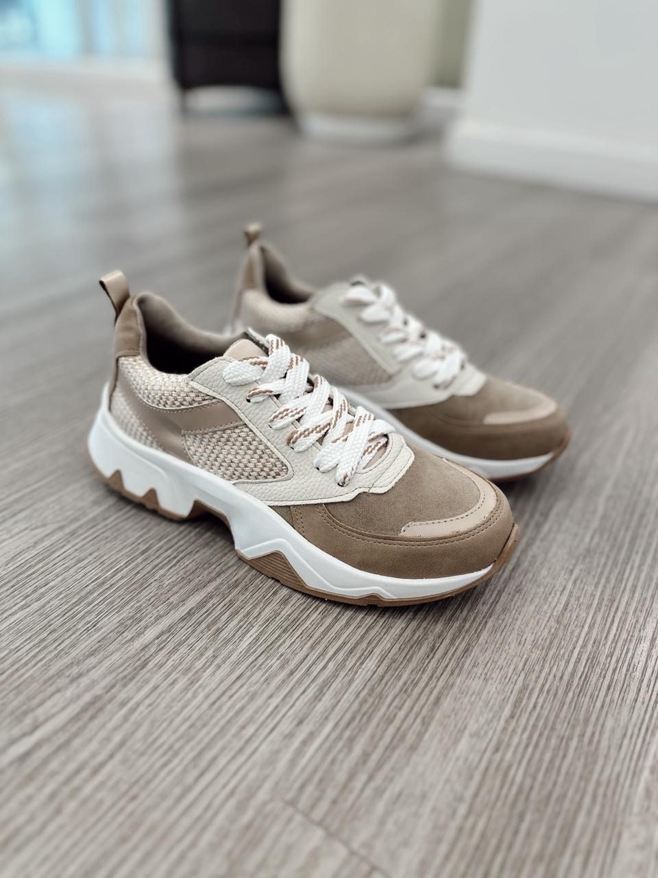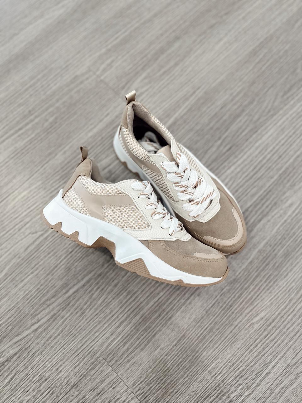 Zapatilla de eco cuero combinada con gamuza y yute.