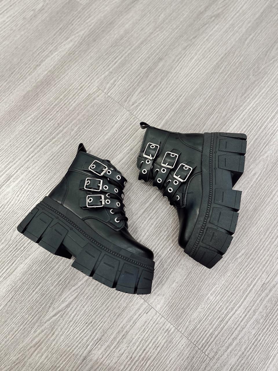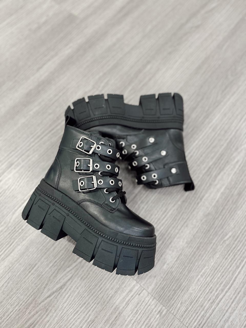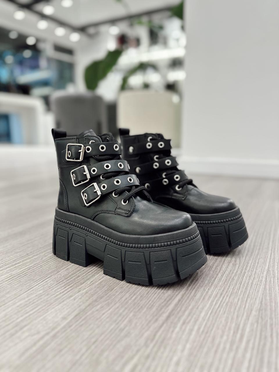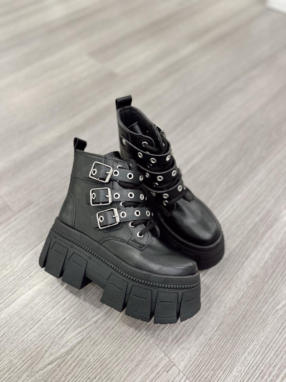Borcego con cordones y tres cintos con ojales no desmontables.