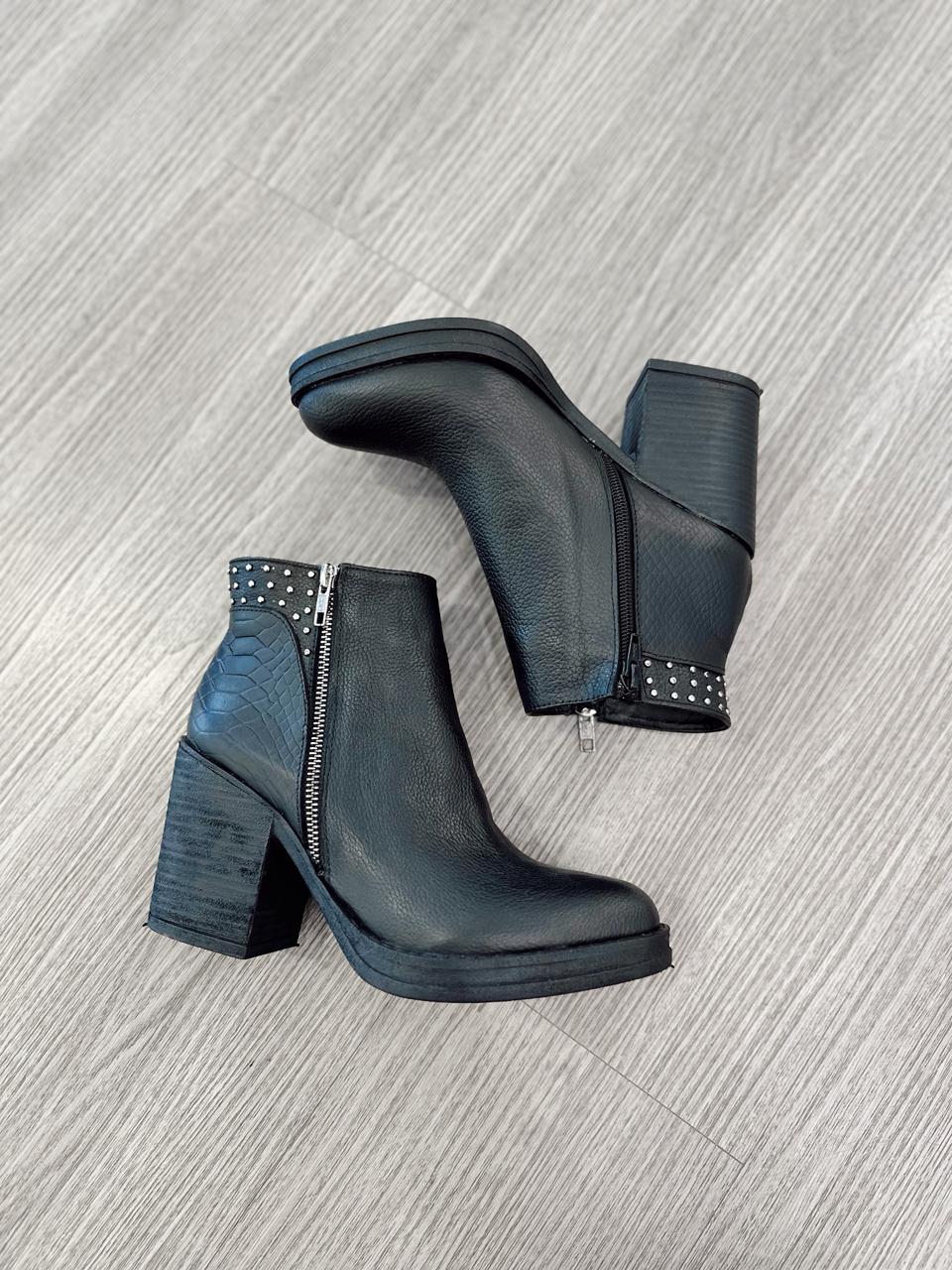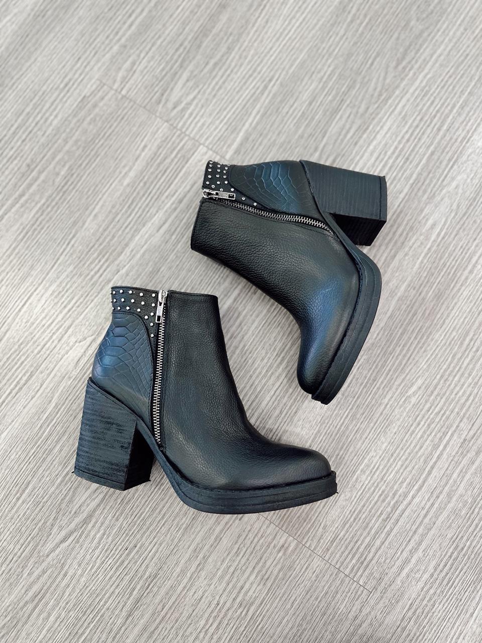 Botas de cuero con detalle de doble cierre en laterales y mini tachas.