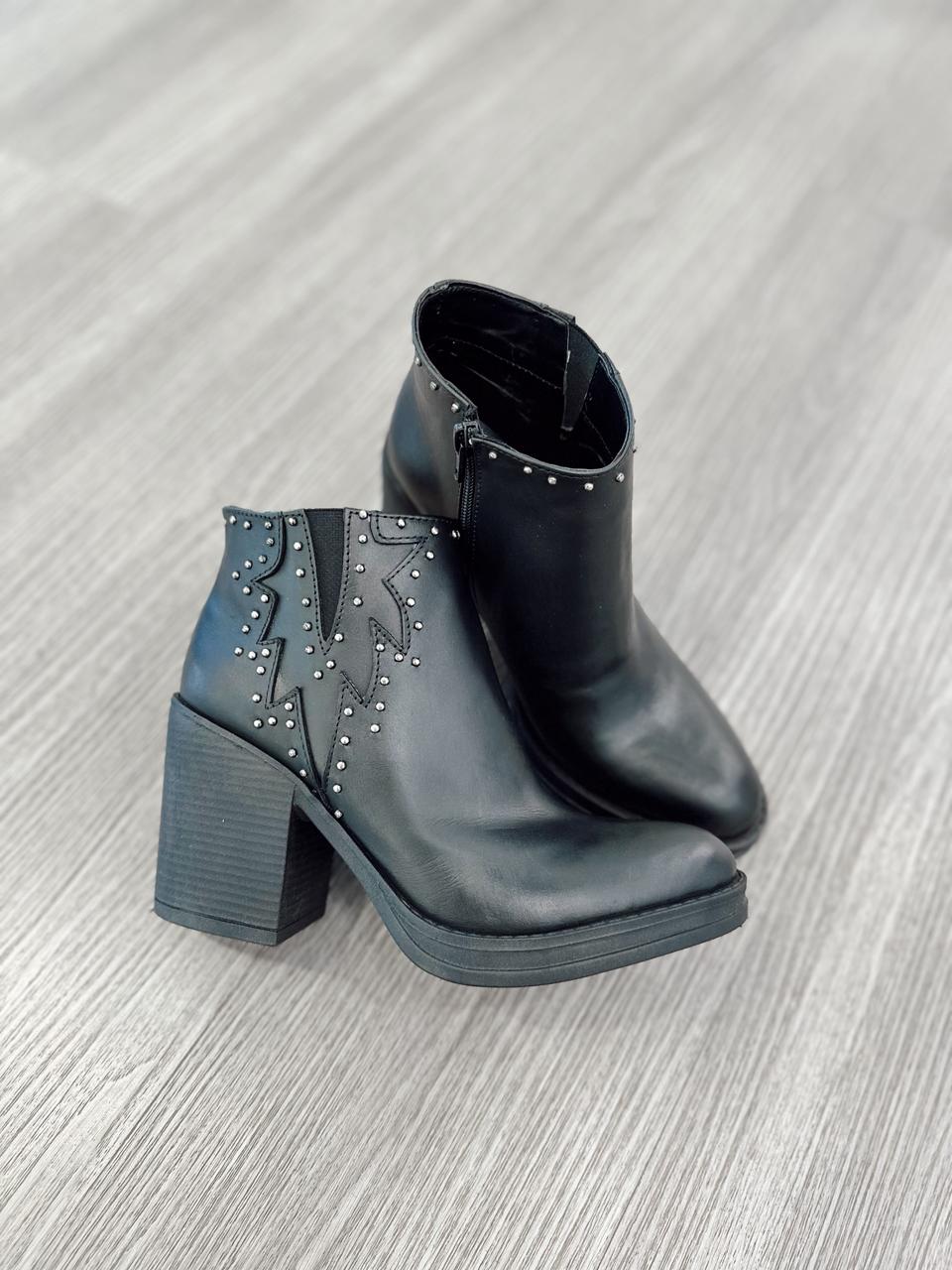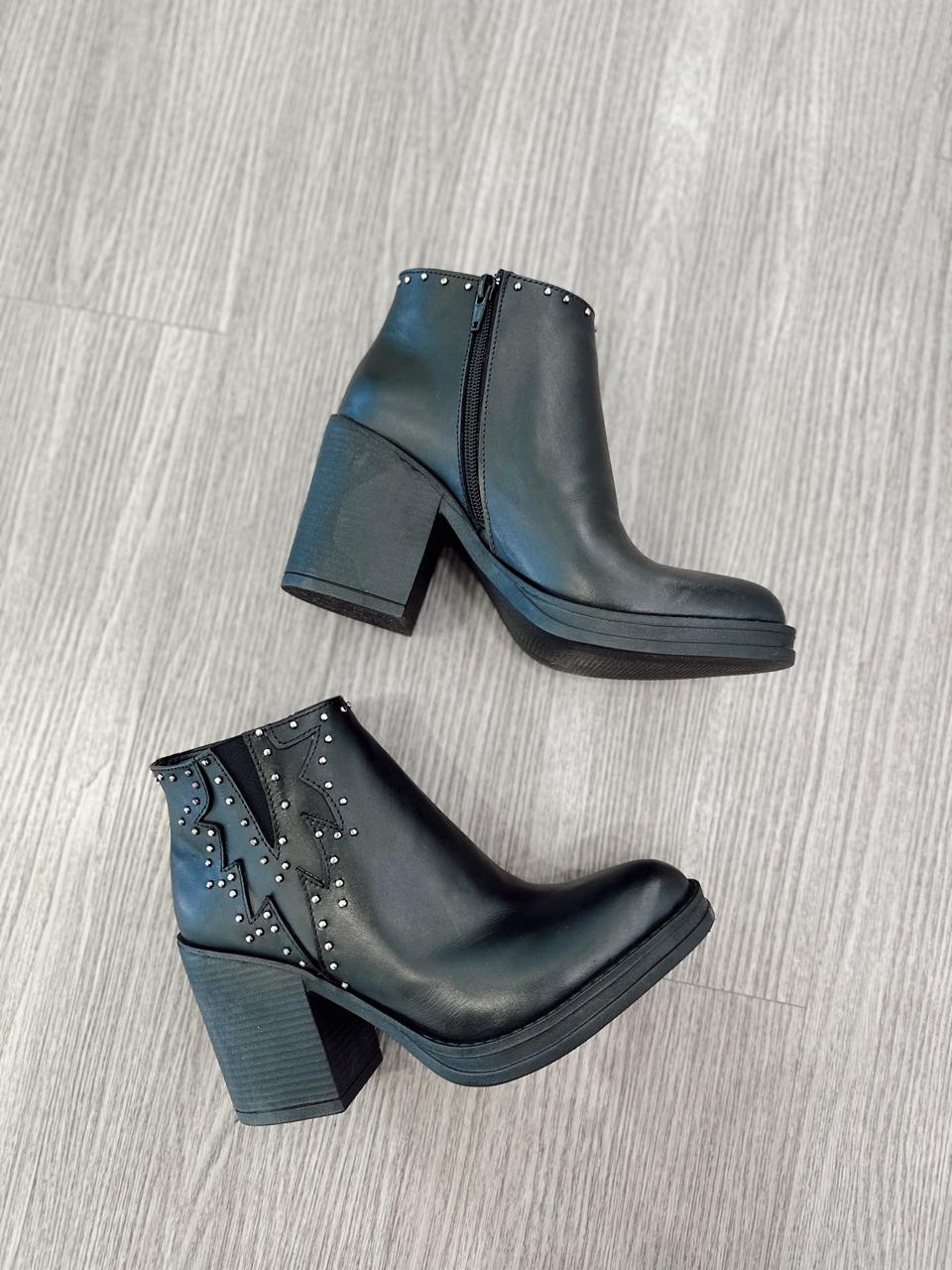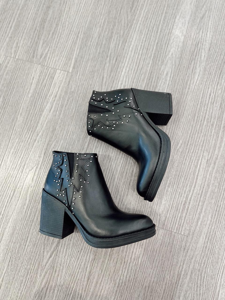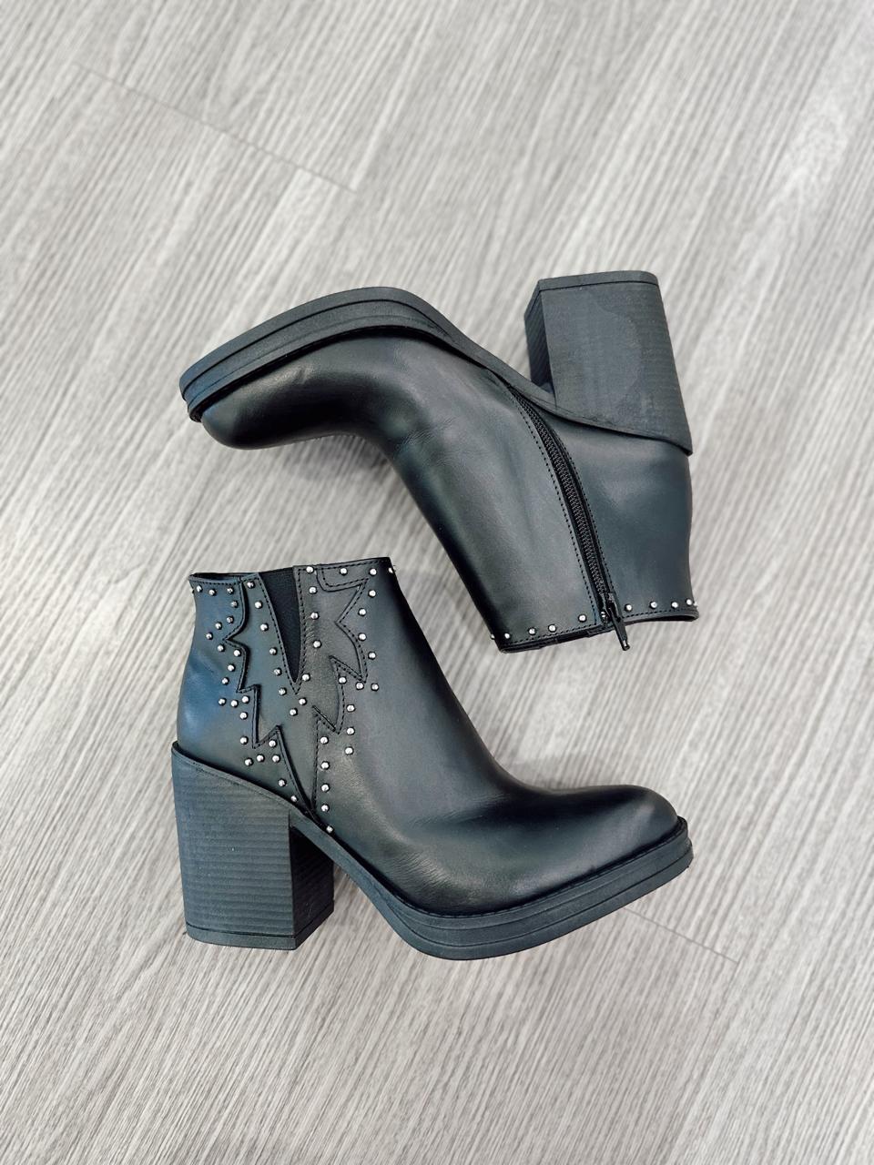 Botas de cuero con tachas, cierre interno y taco de madera.
