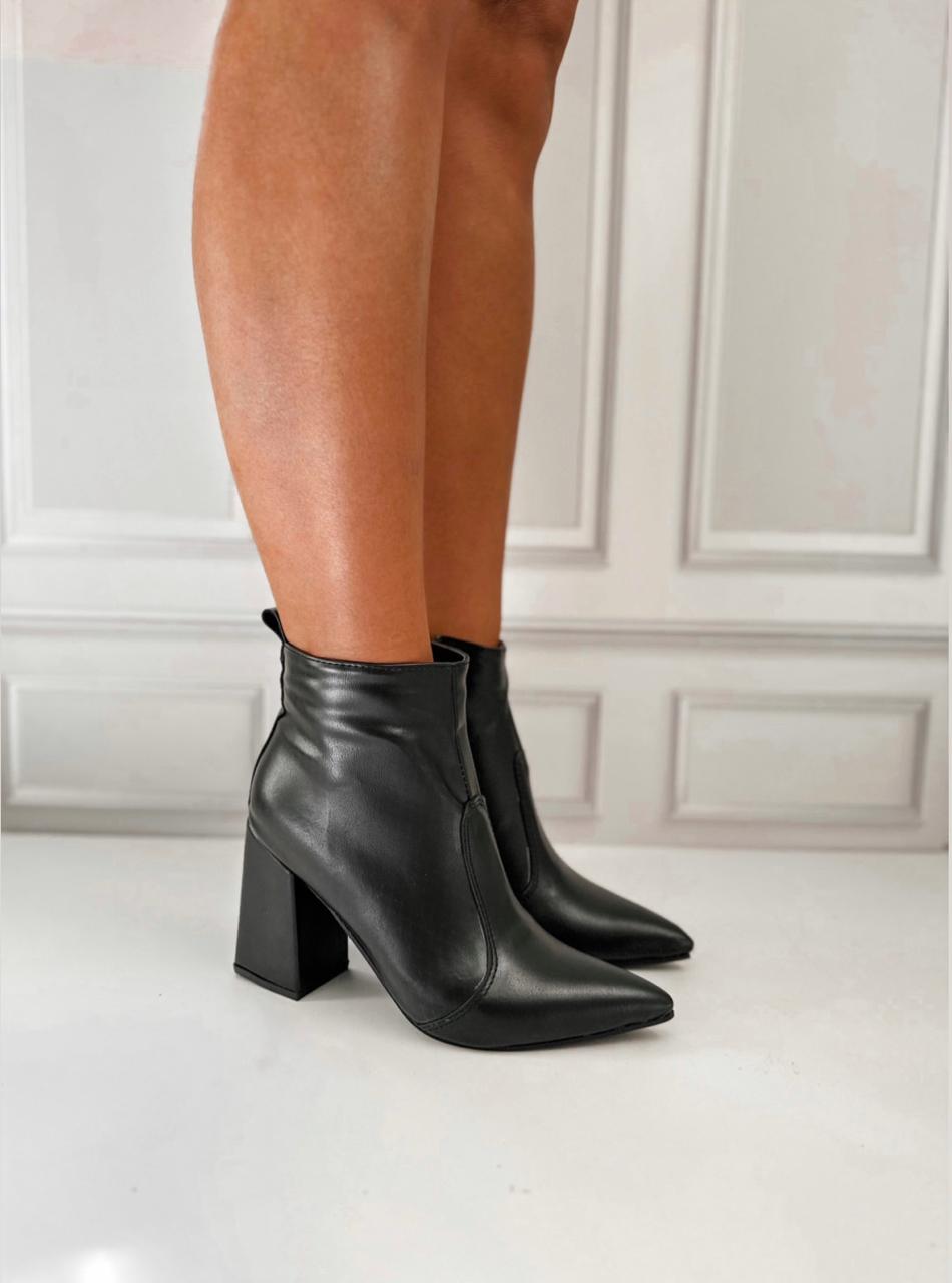Botitas de ecocuero con taco cuadrado.