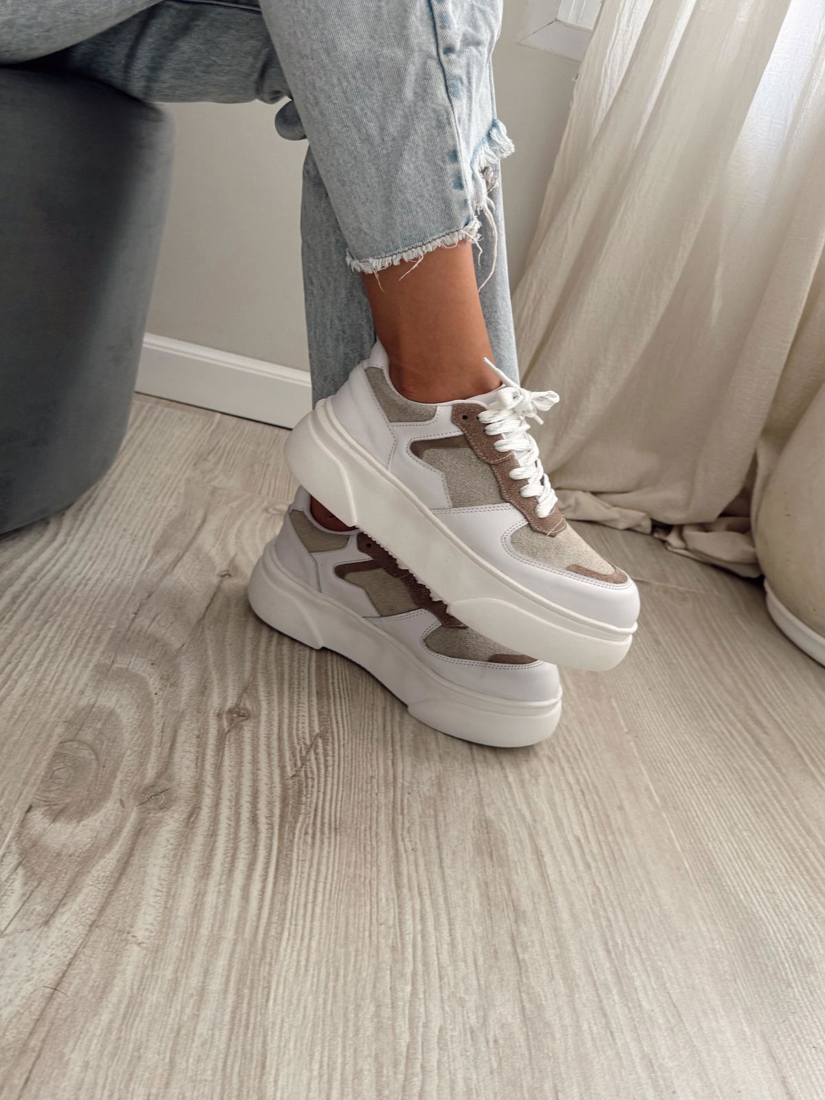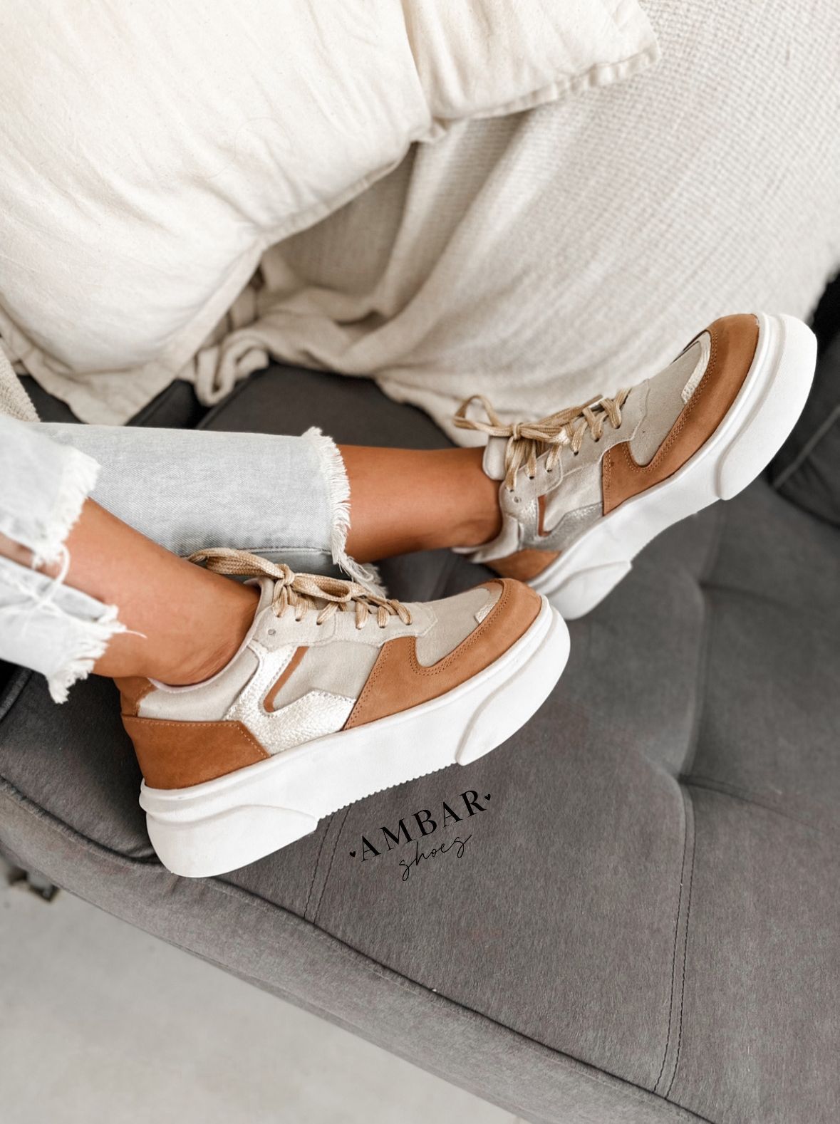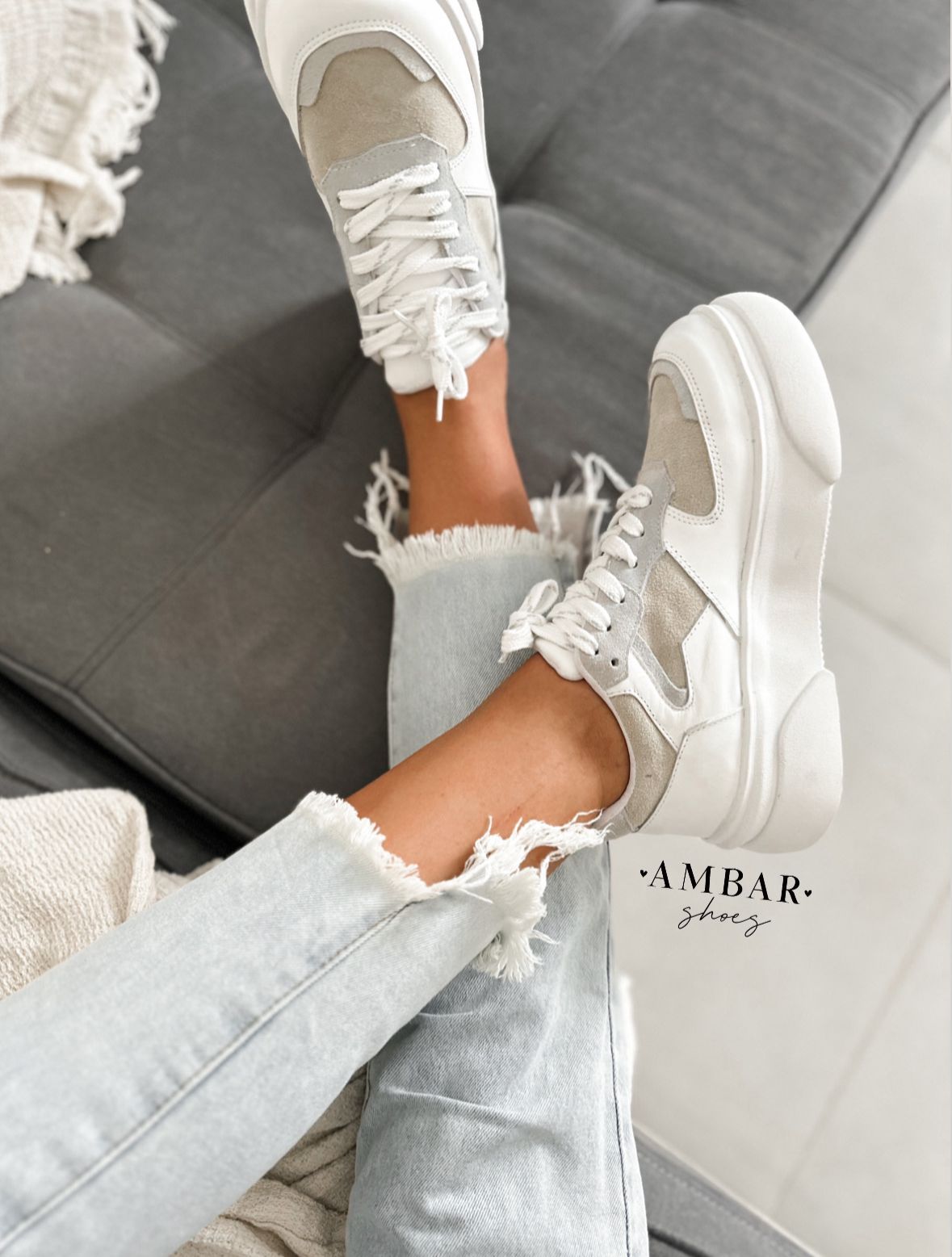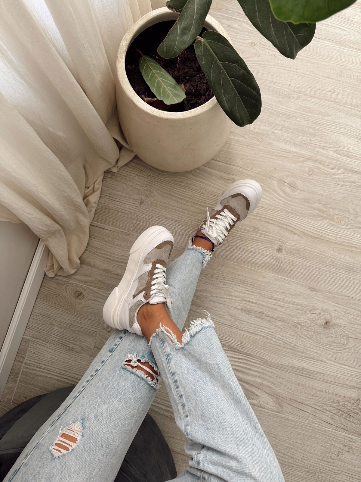 Zapatillas confeccionadas en eco cuero con gamuza.