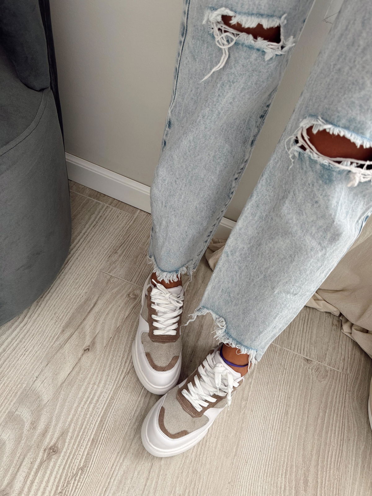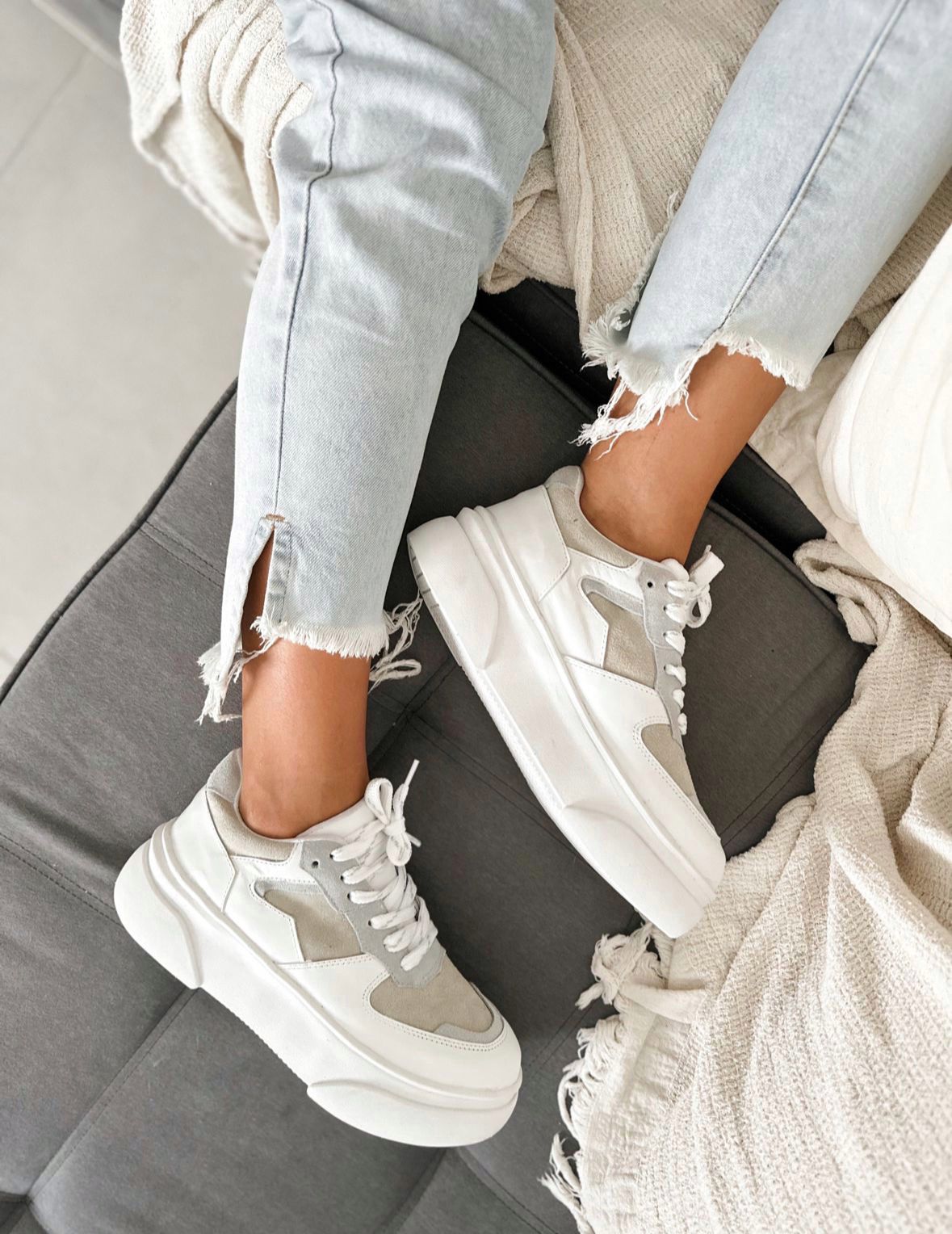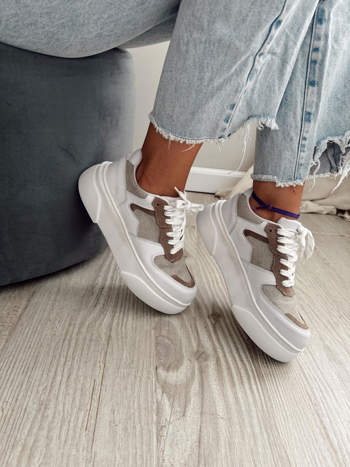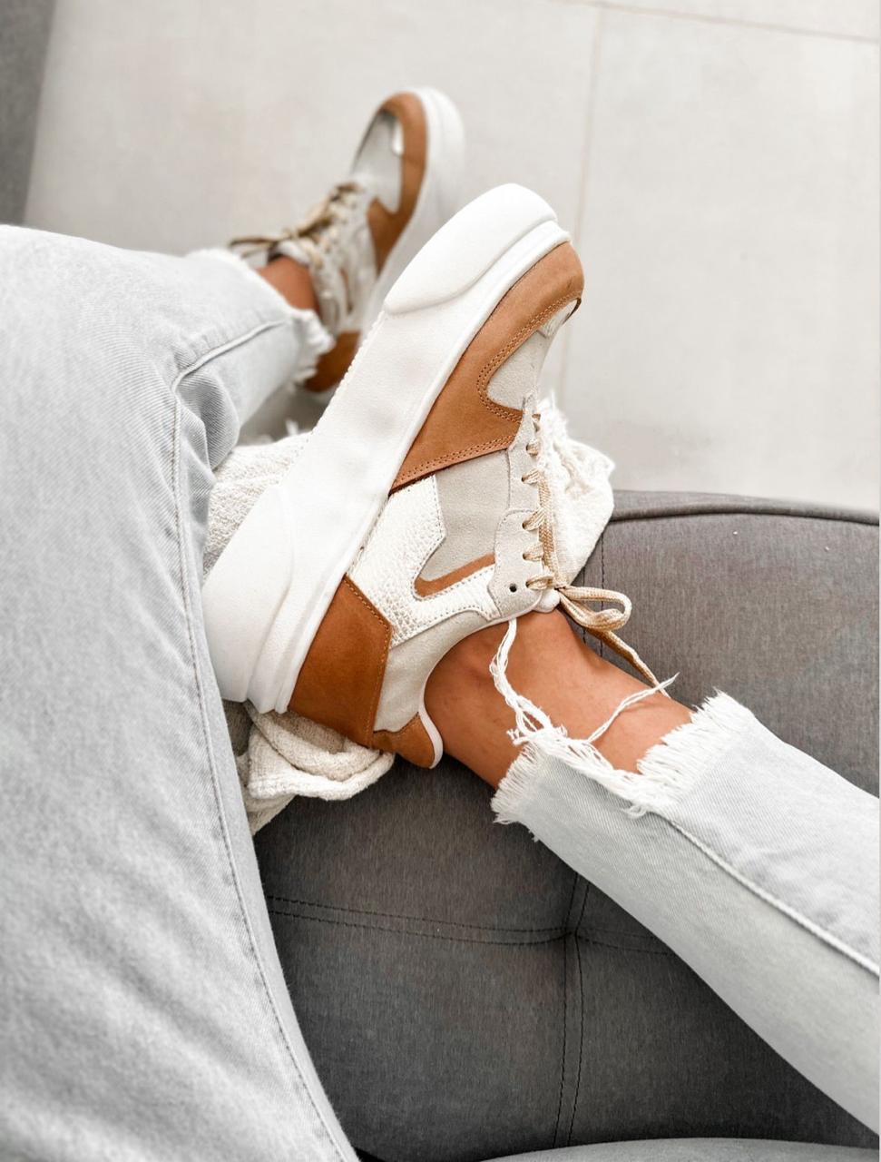 Zapatillas confeccionadas en eco cuero con gamuza.