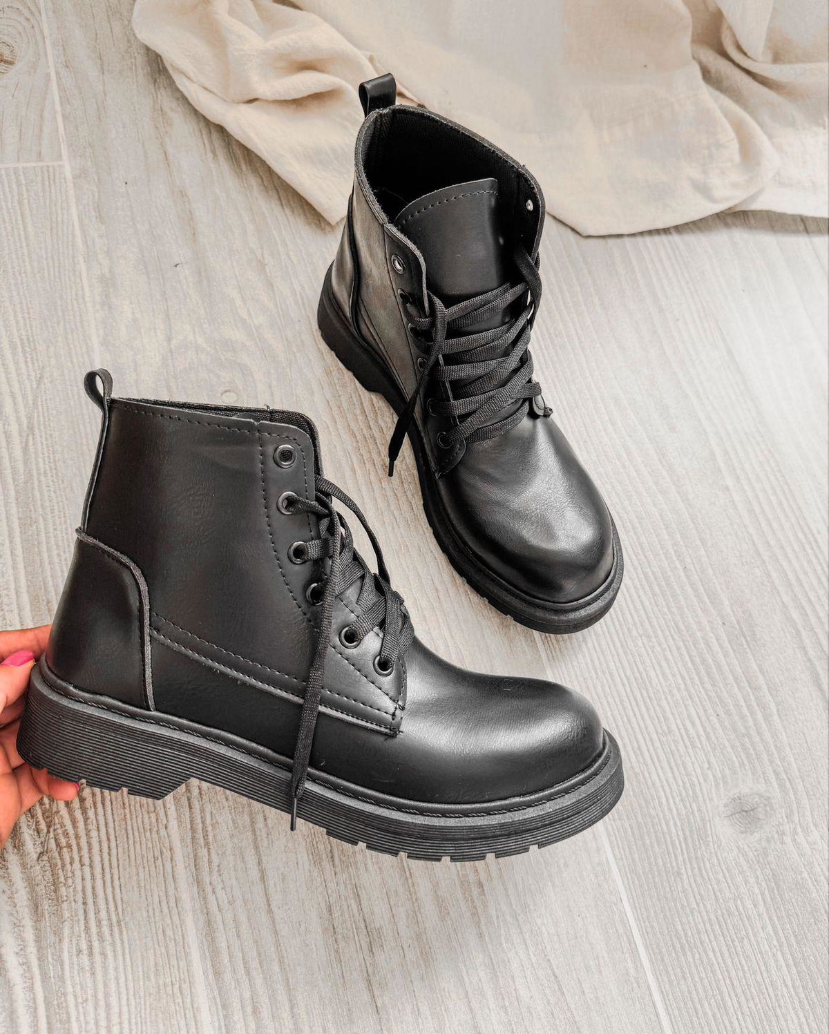 Borcegos de ecocuero clásico bajo con cordones.