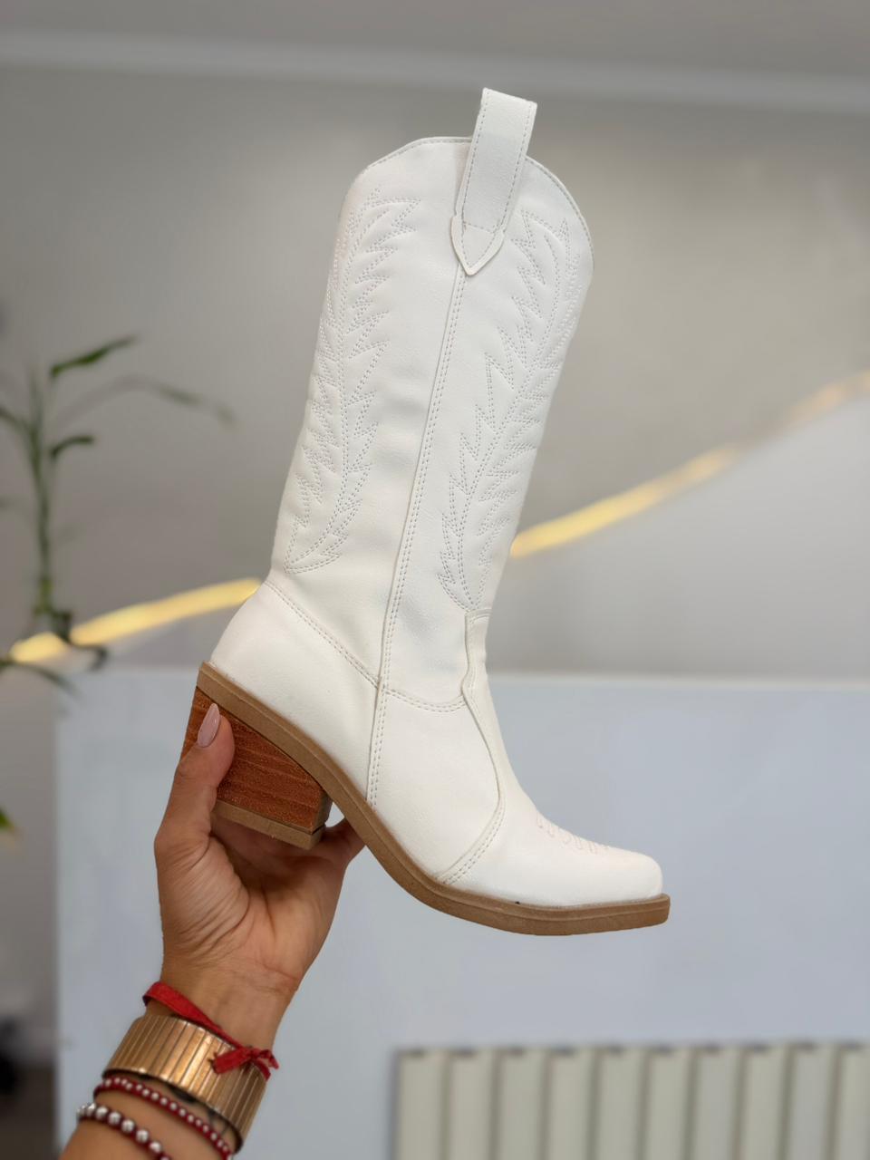 Texanas de ecocuero caña alta y bordada.