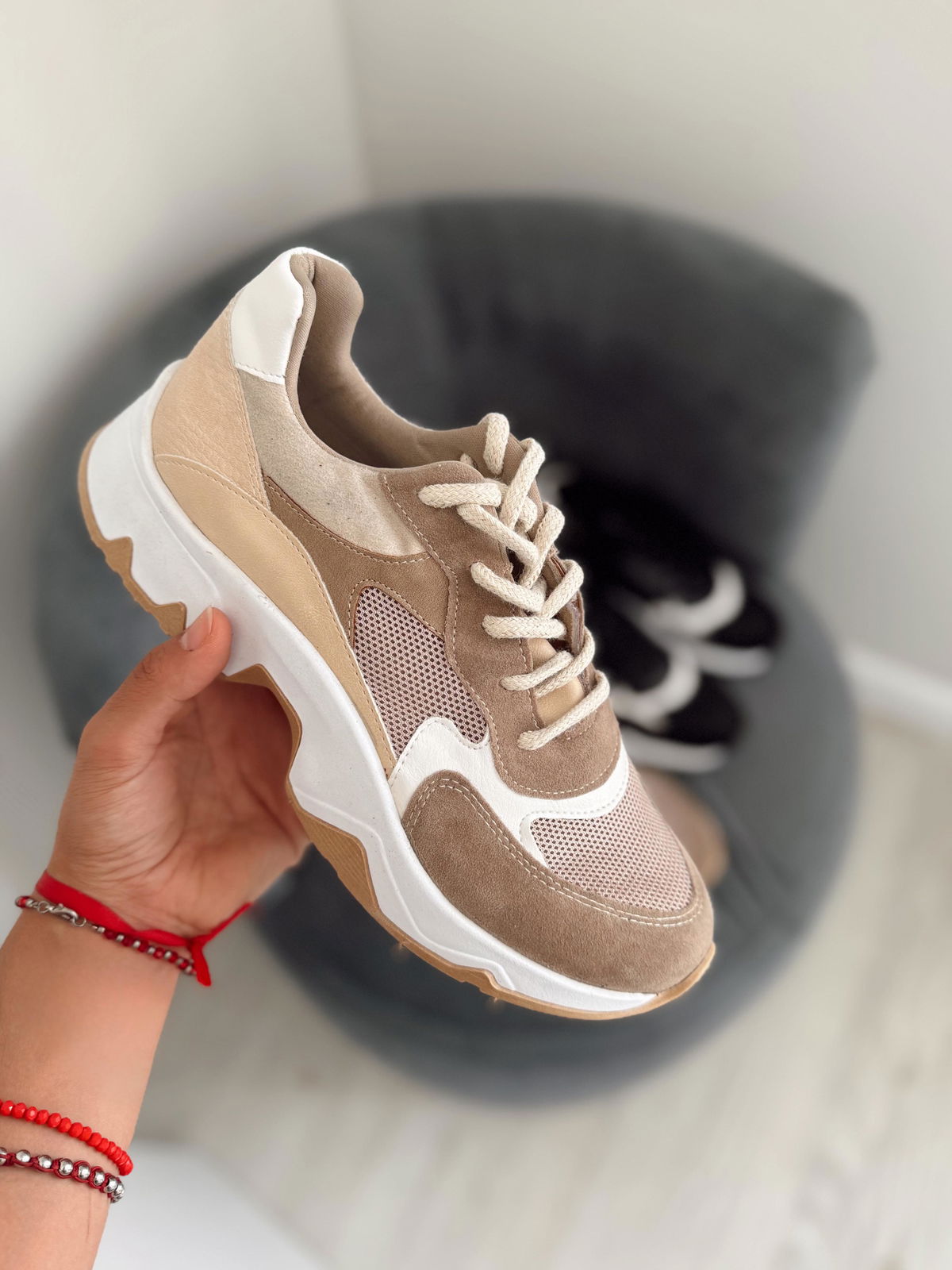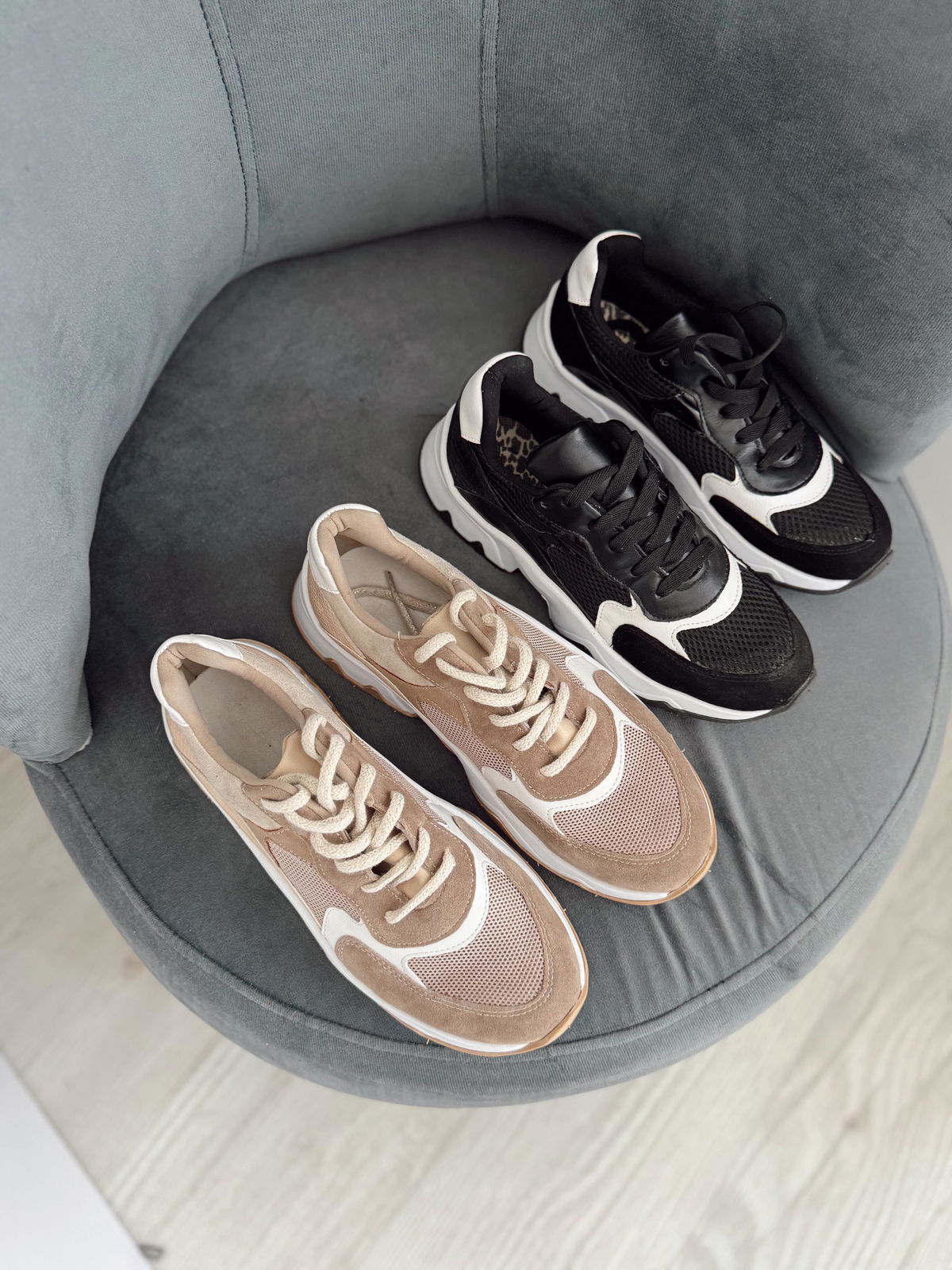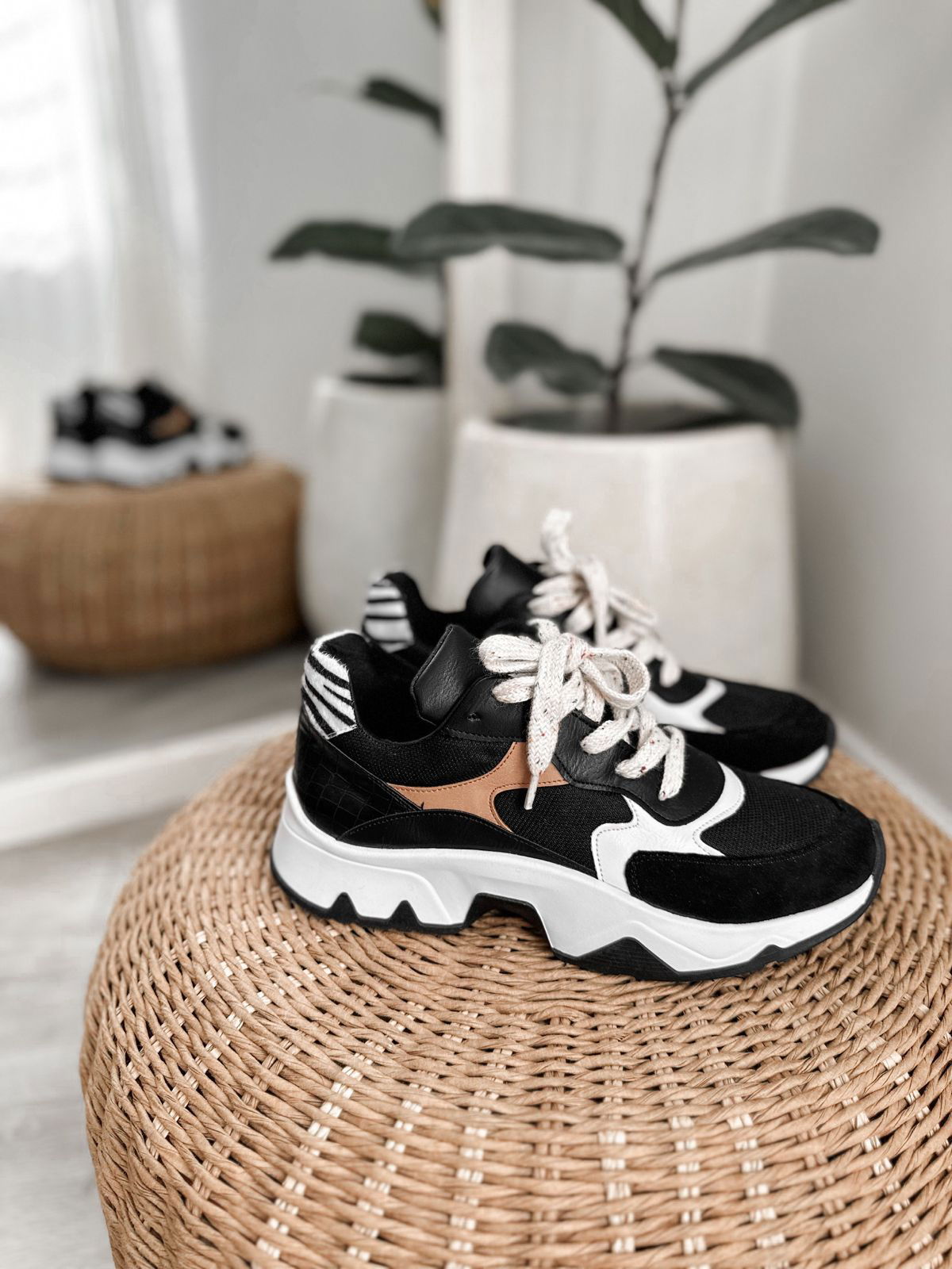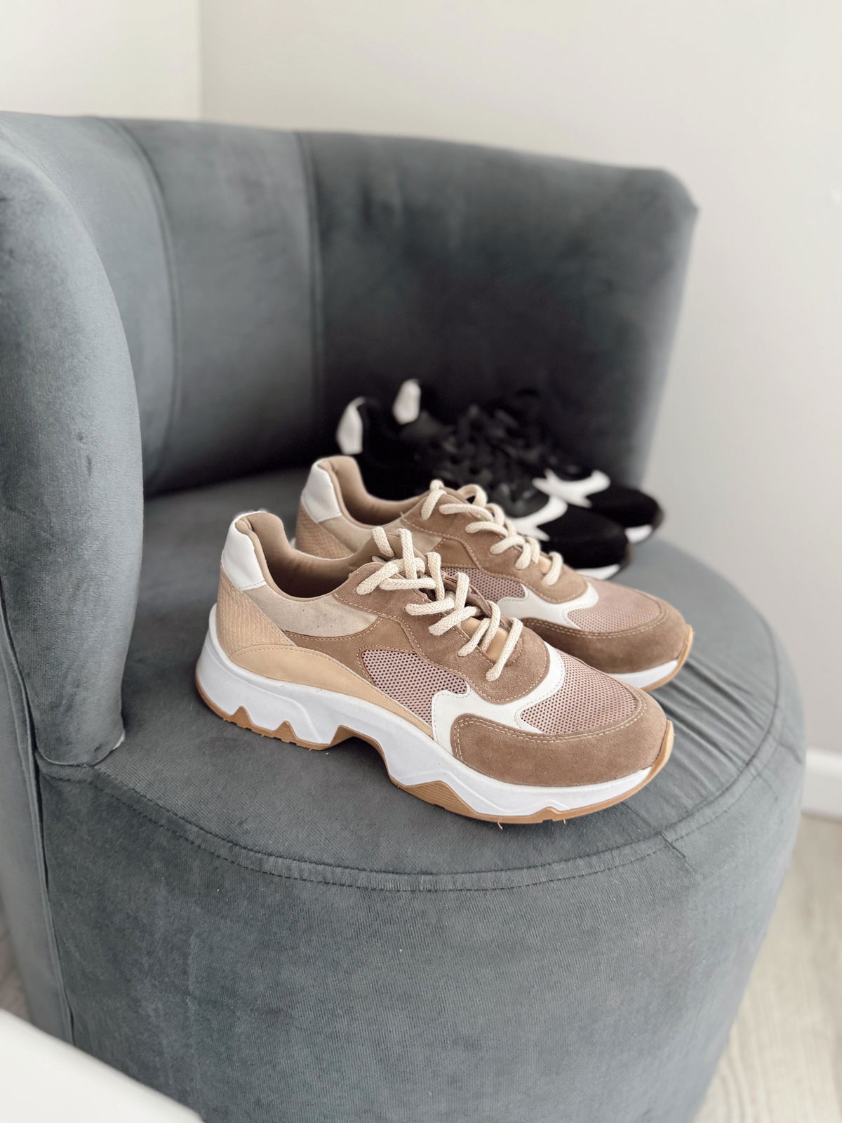 Zapatillas de ecocuero con detalles en gamuza.