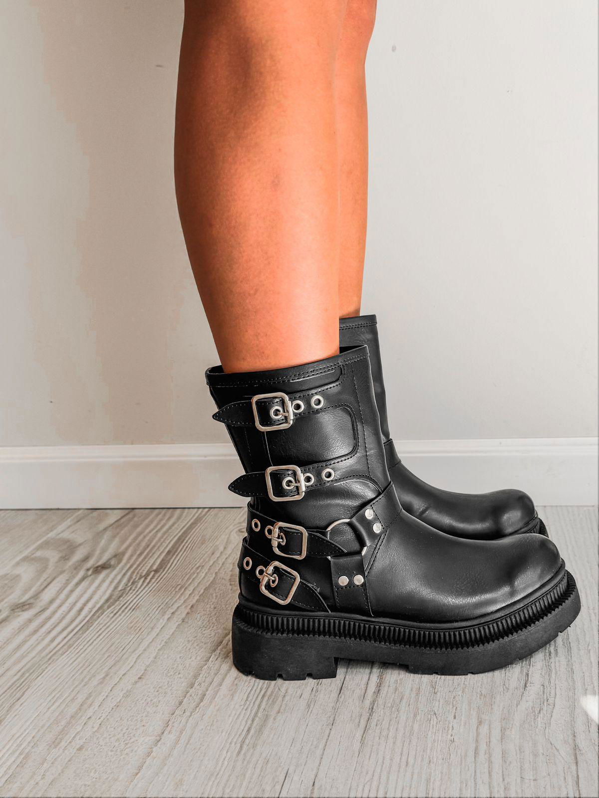 Botas de ecocuero con hebillas.