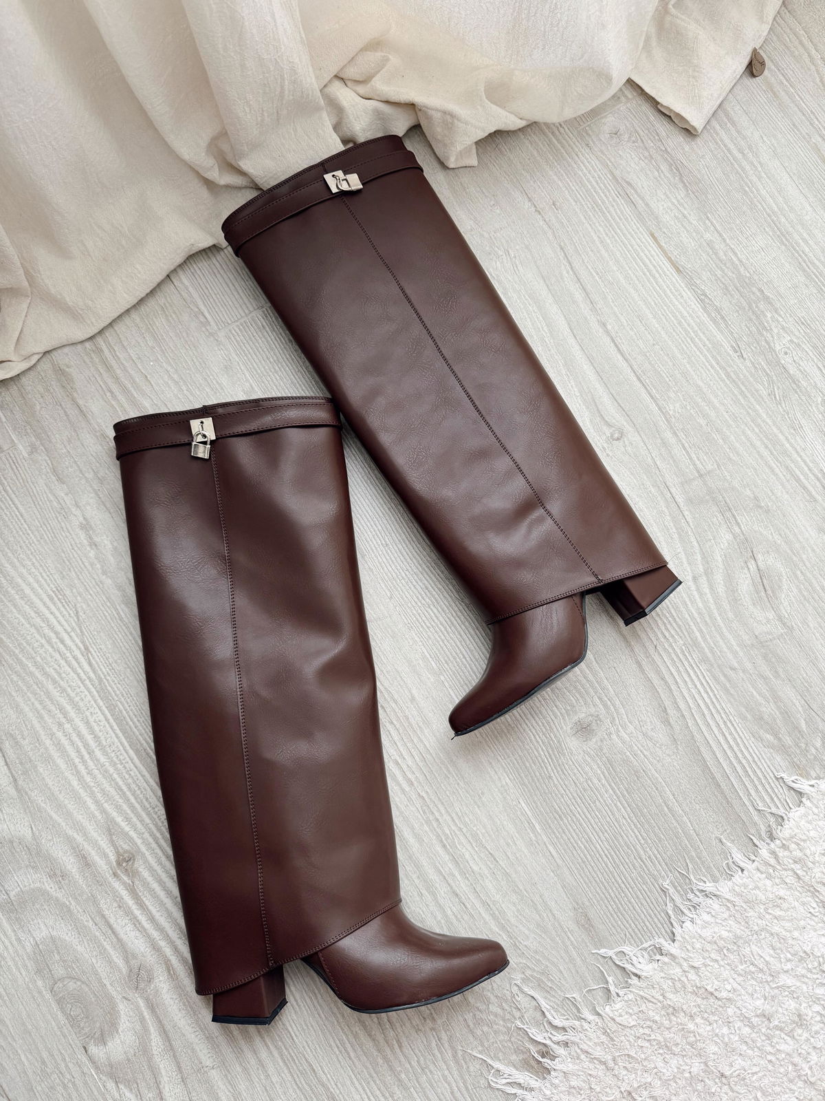 Botas color chocolate de caña alta, con accesorio de la hebilla desmontable.