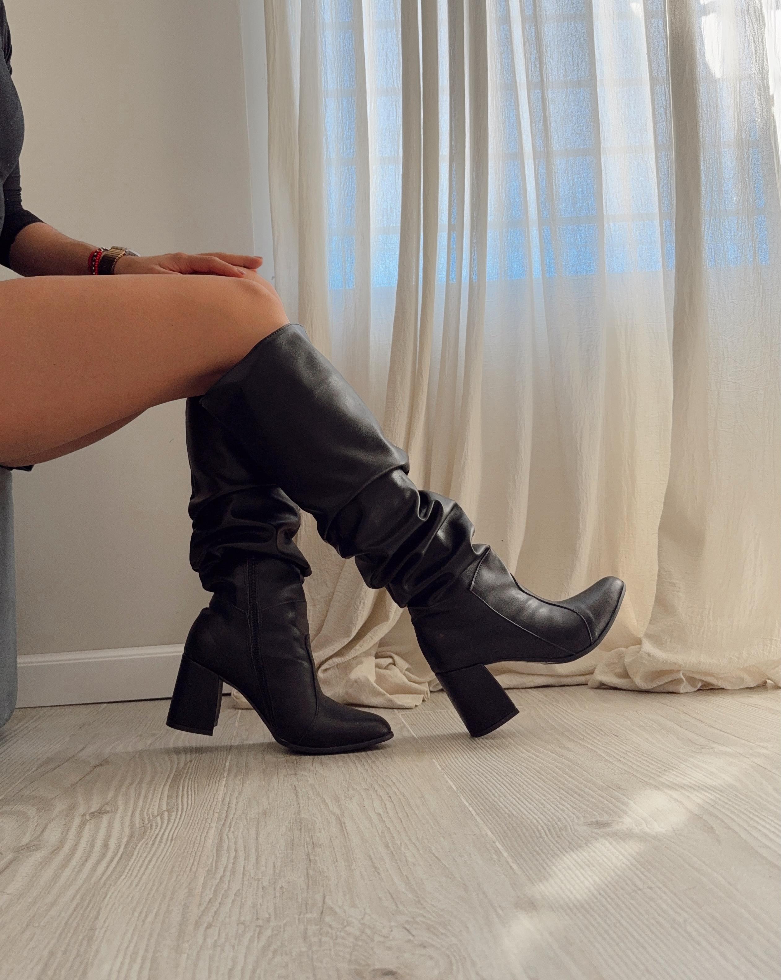Botas altas de ecocuero arrugadas. HORMA CHICA Y ANGOSTA.
