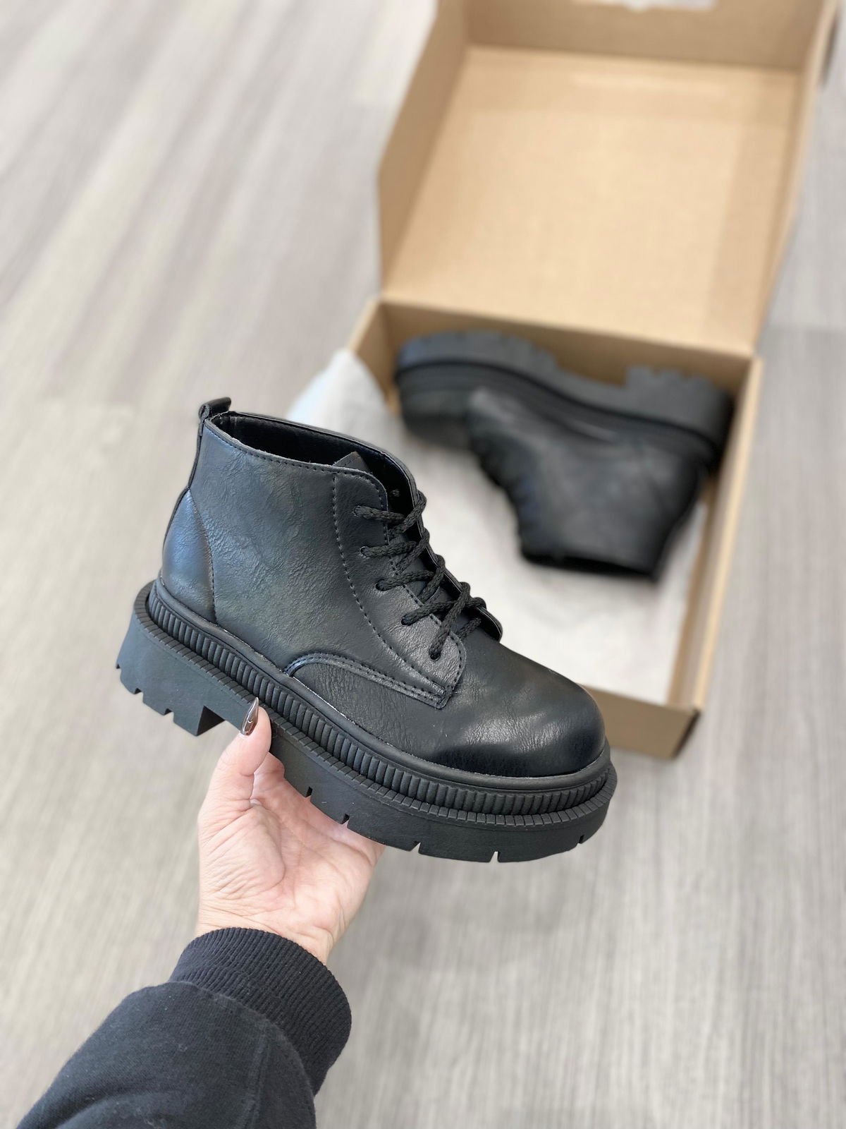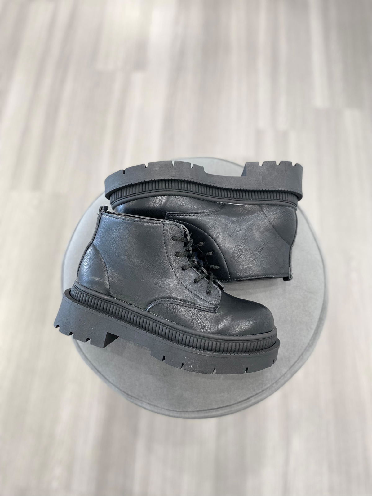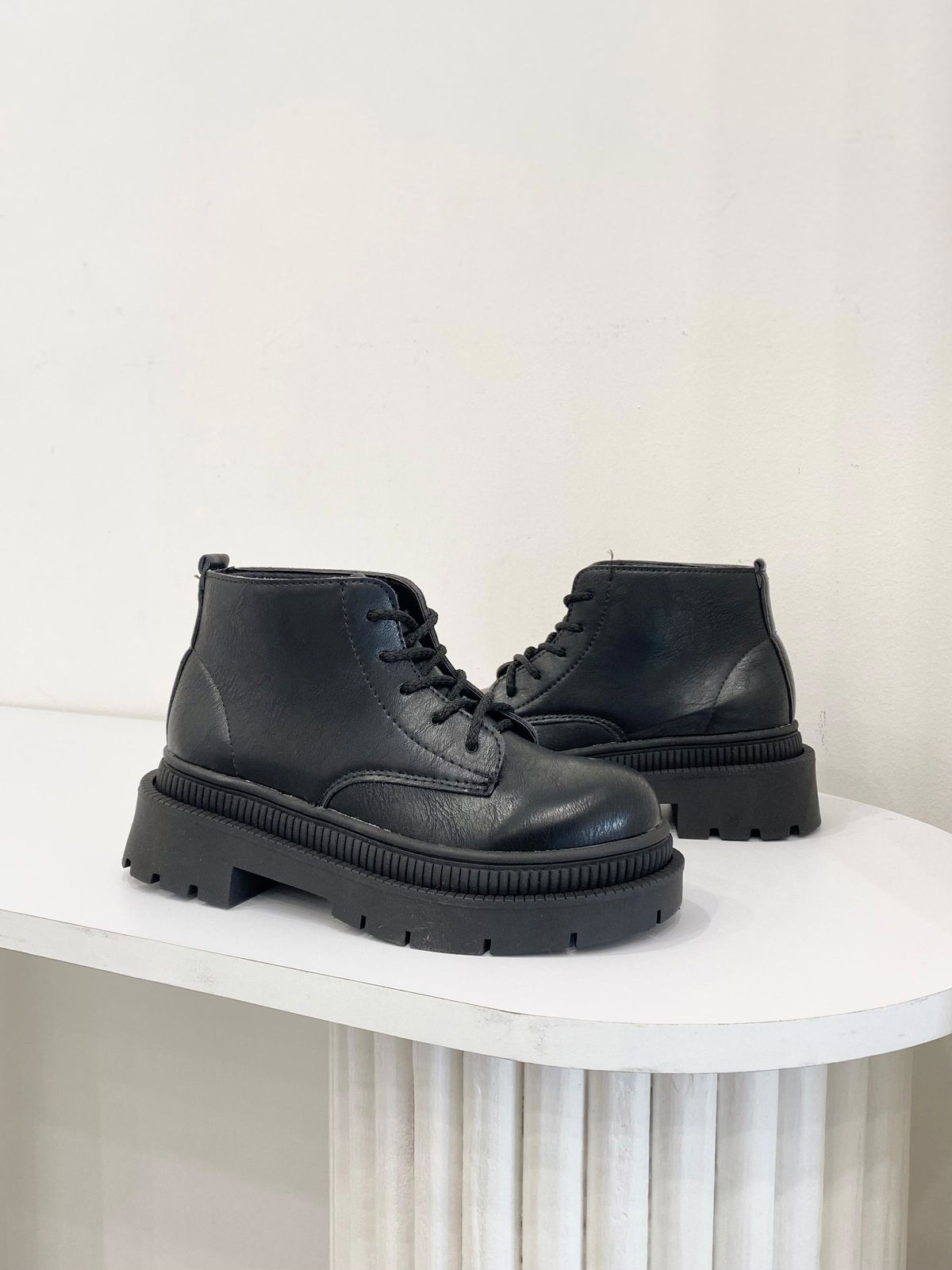 Borcego de eco cuero con cordones, caña baja con plataforma.
