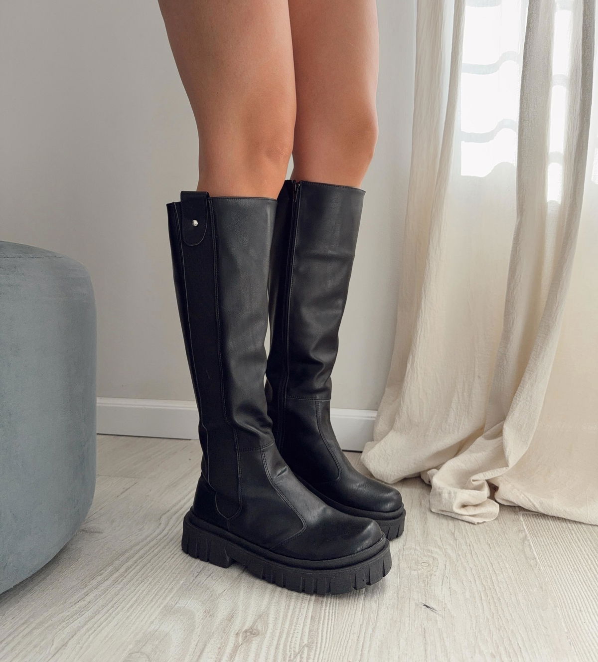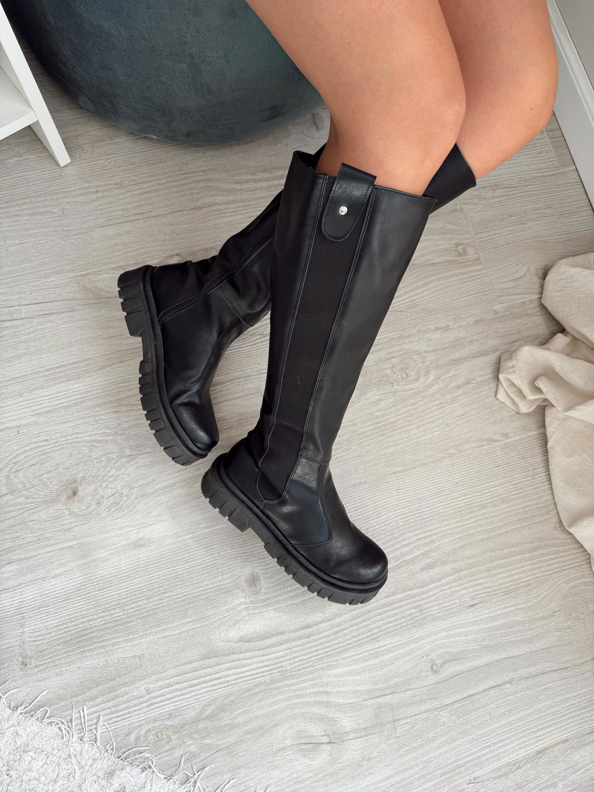 Botas de eco cuero con elástico en costado externo y cierre al largo en costado interno.