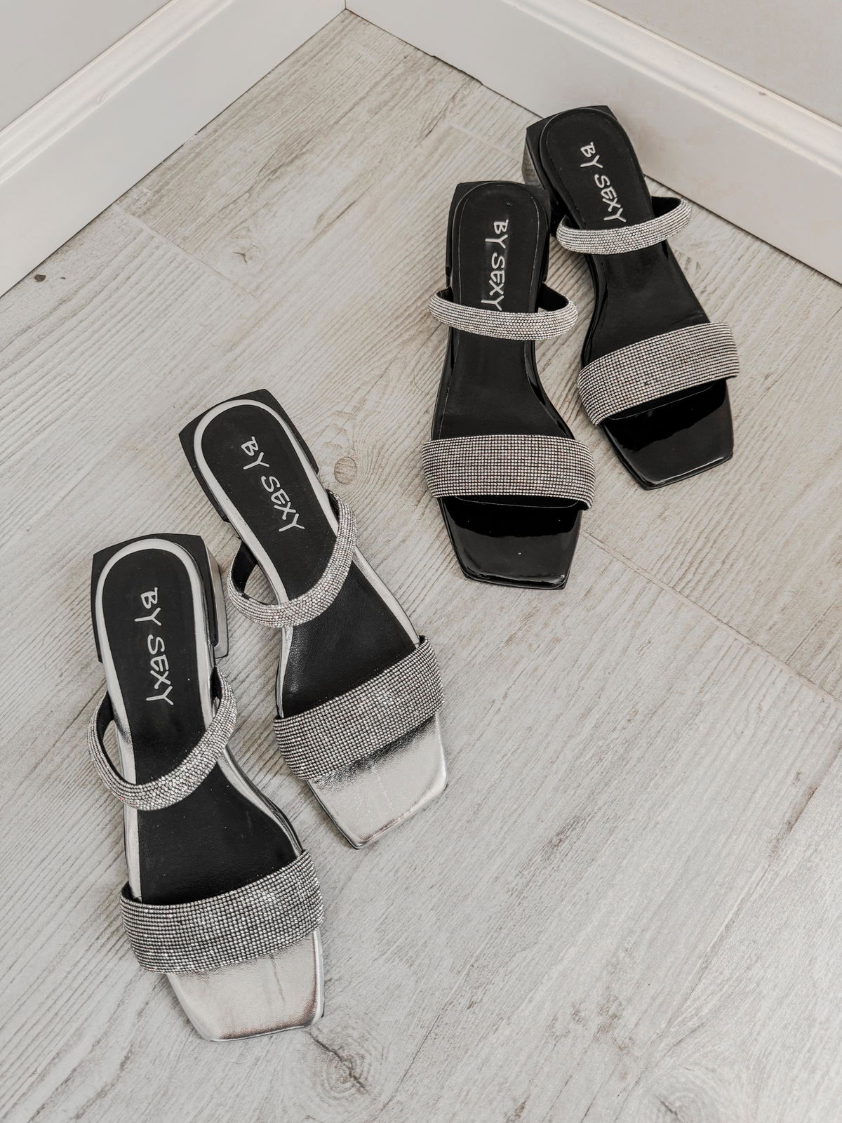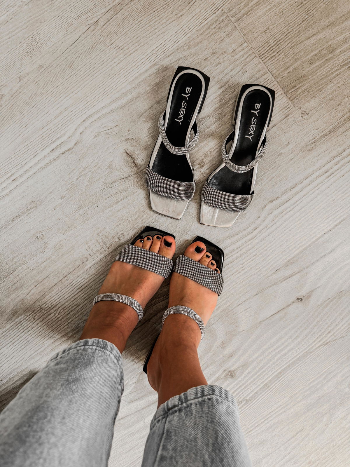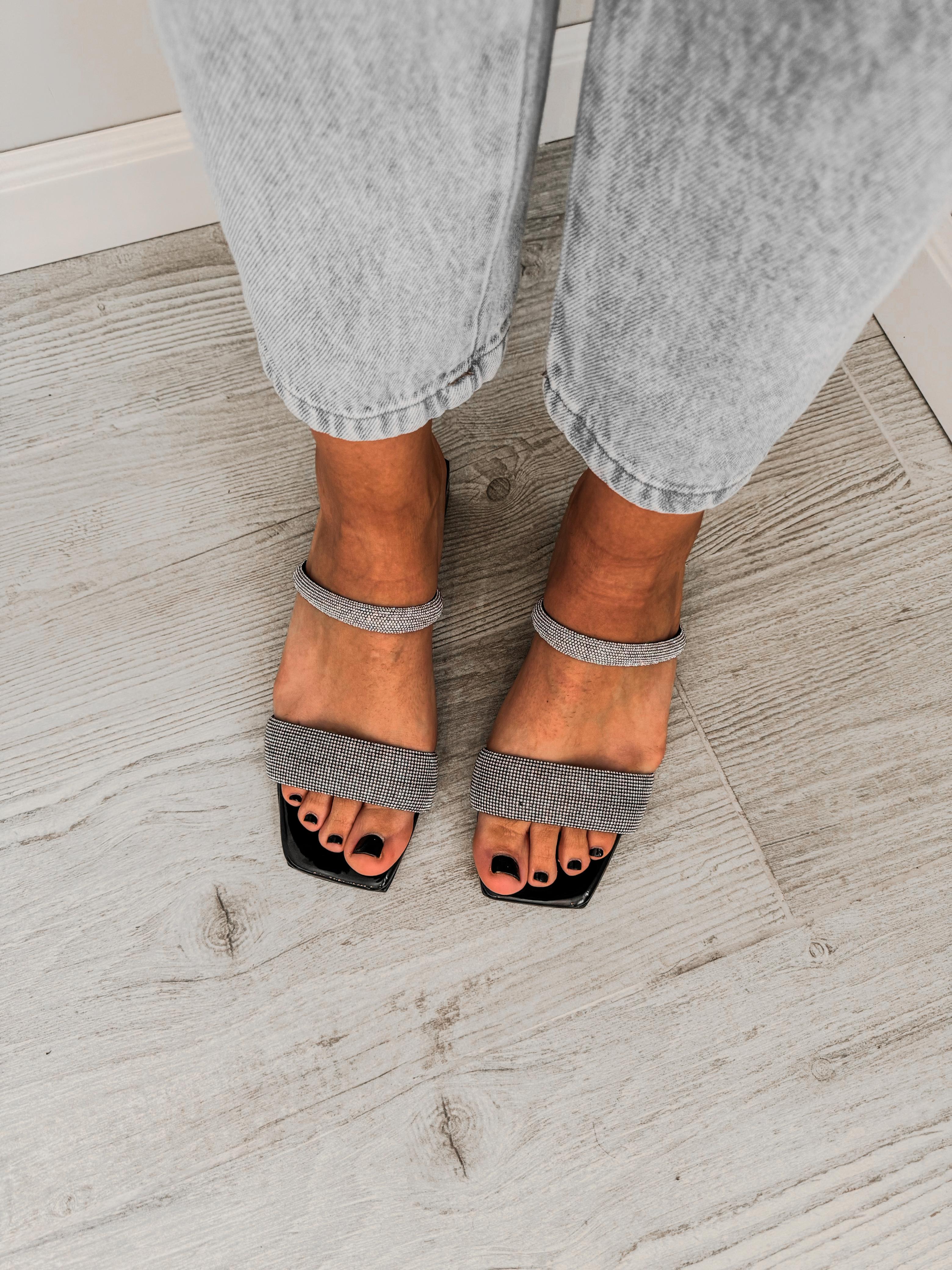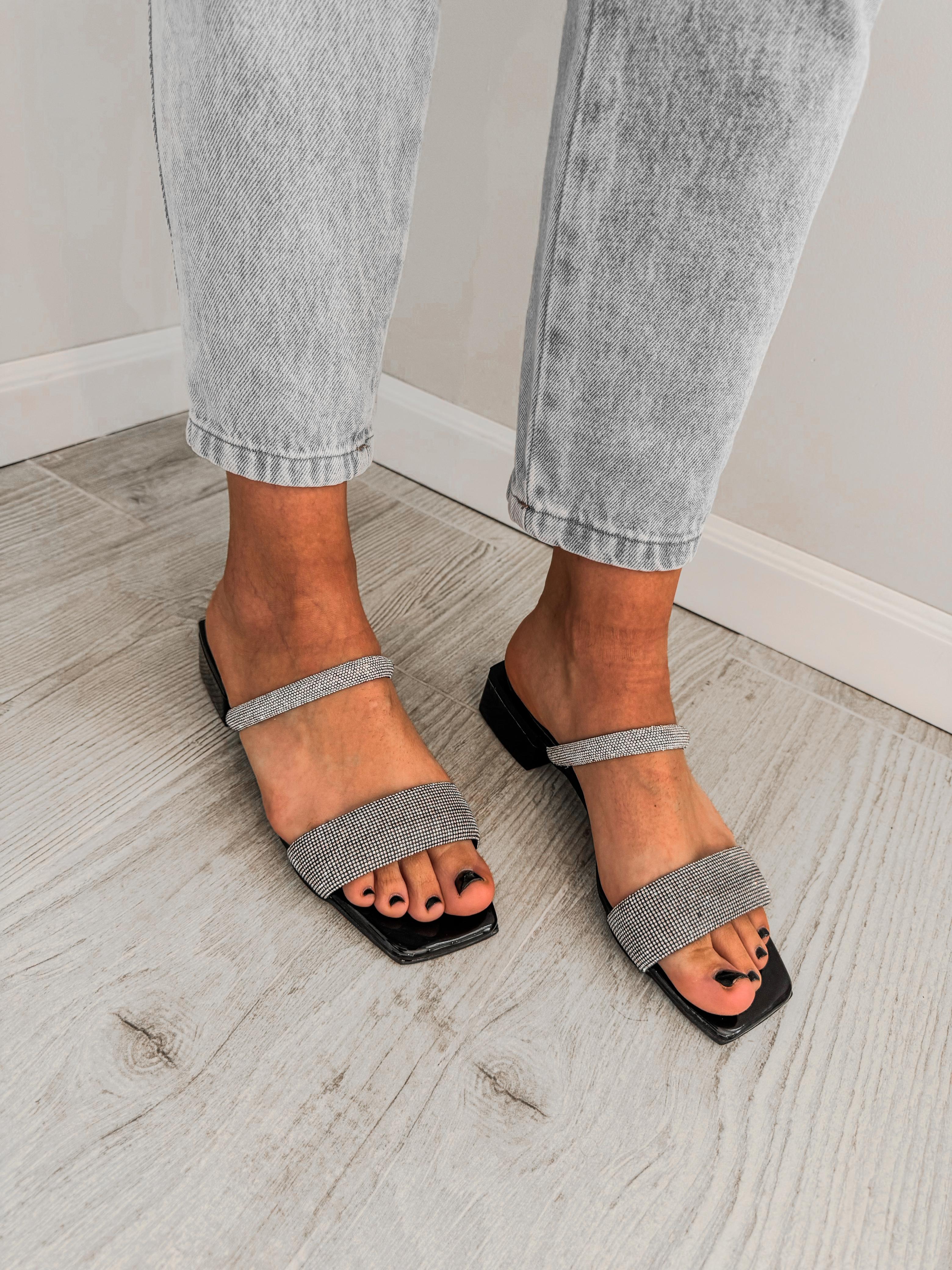 Sandalia con doble tira de strass.