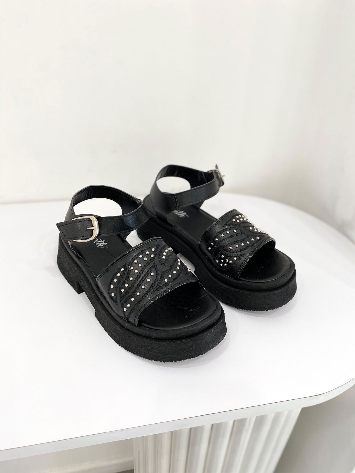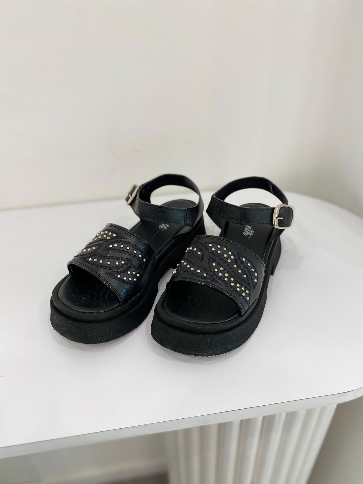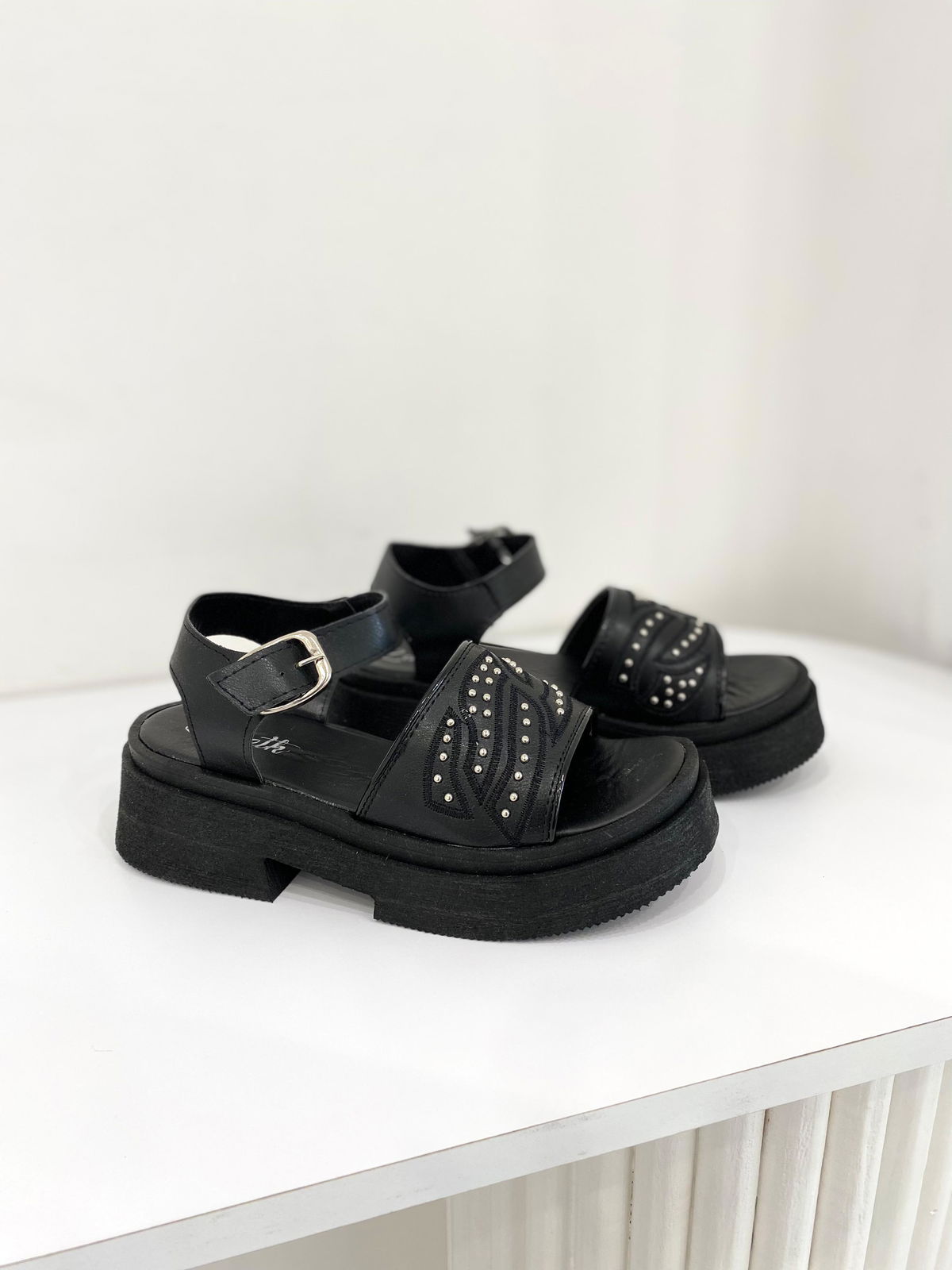 Sandalia con plataforma, sin talonera y con tira delantera ancha.