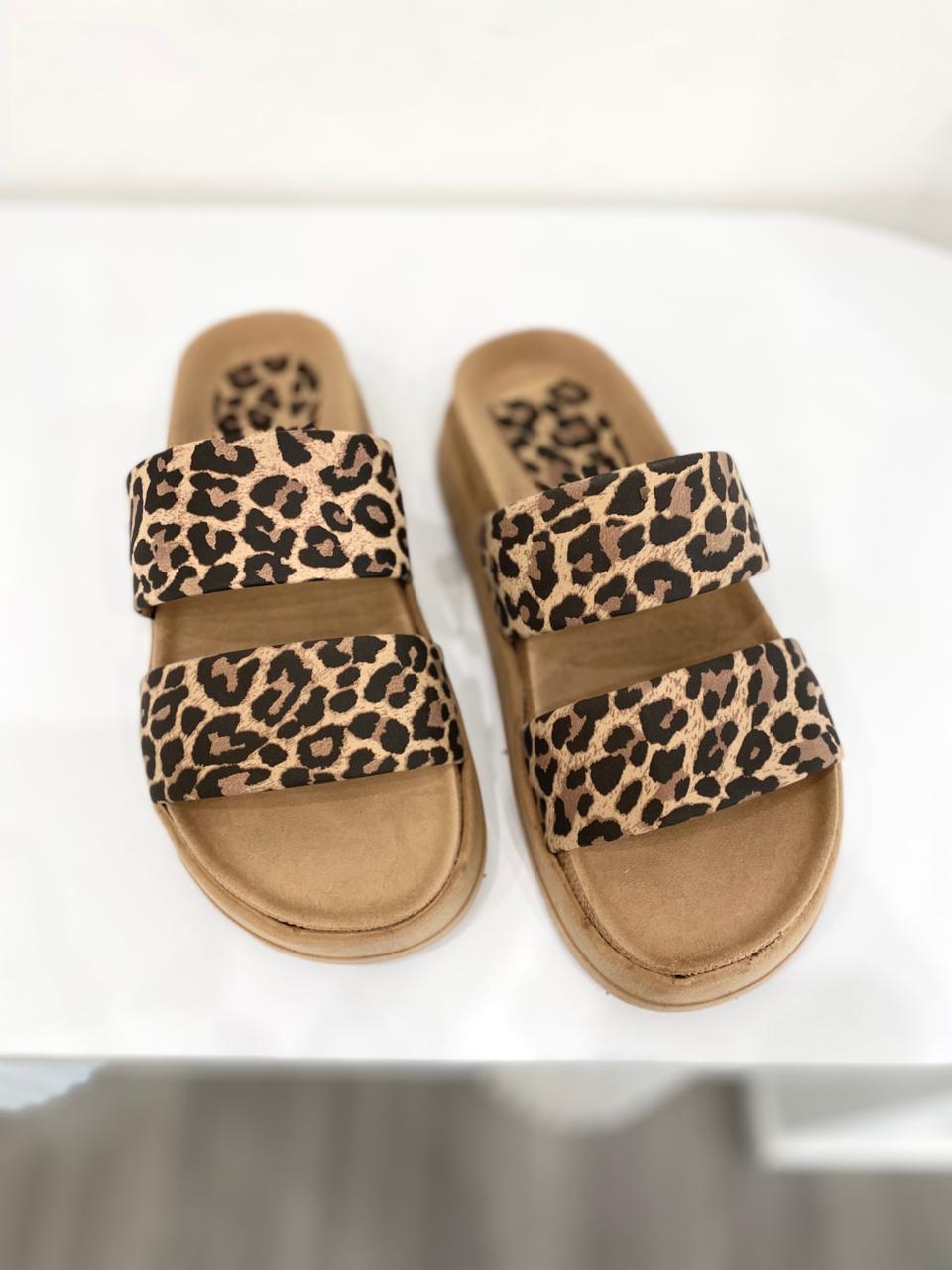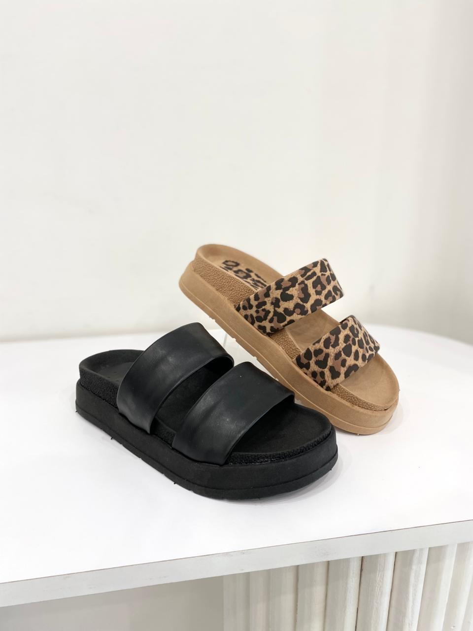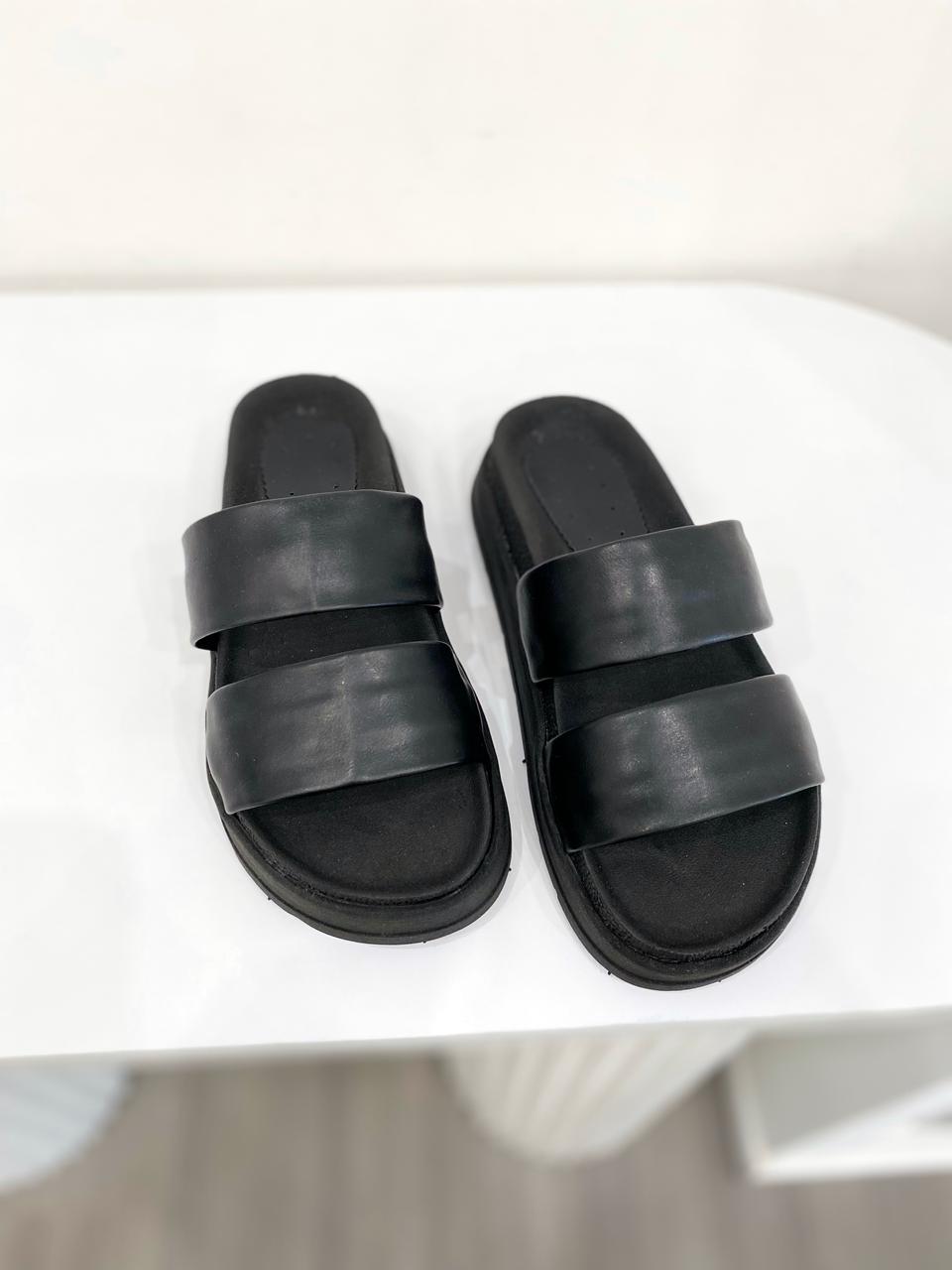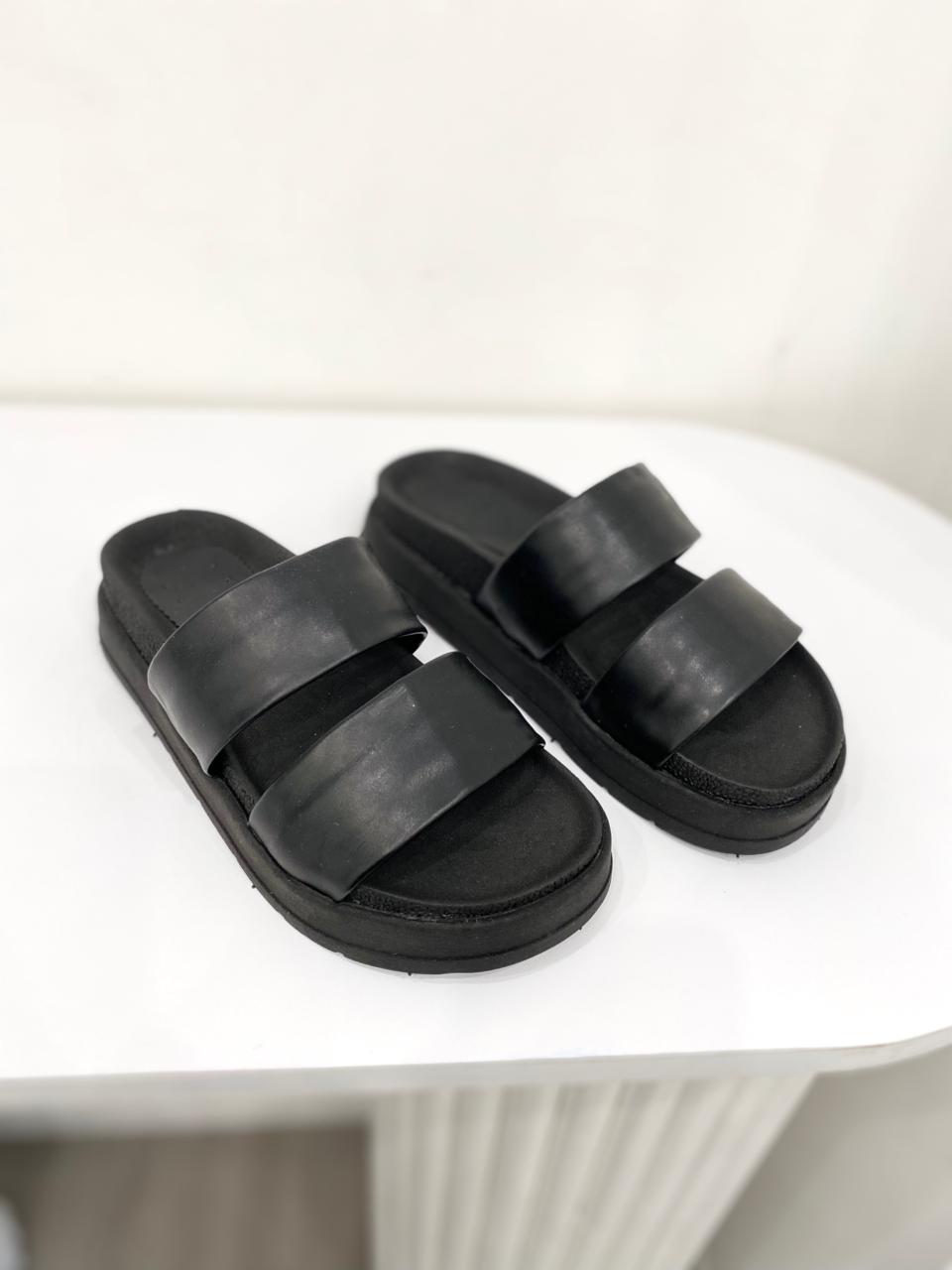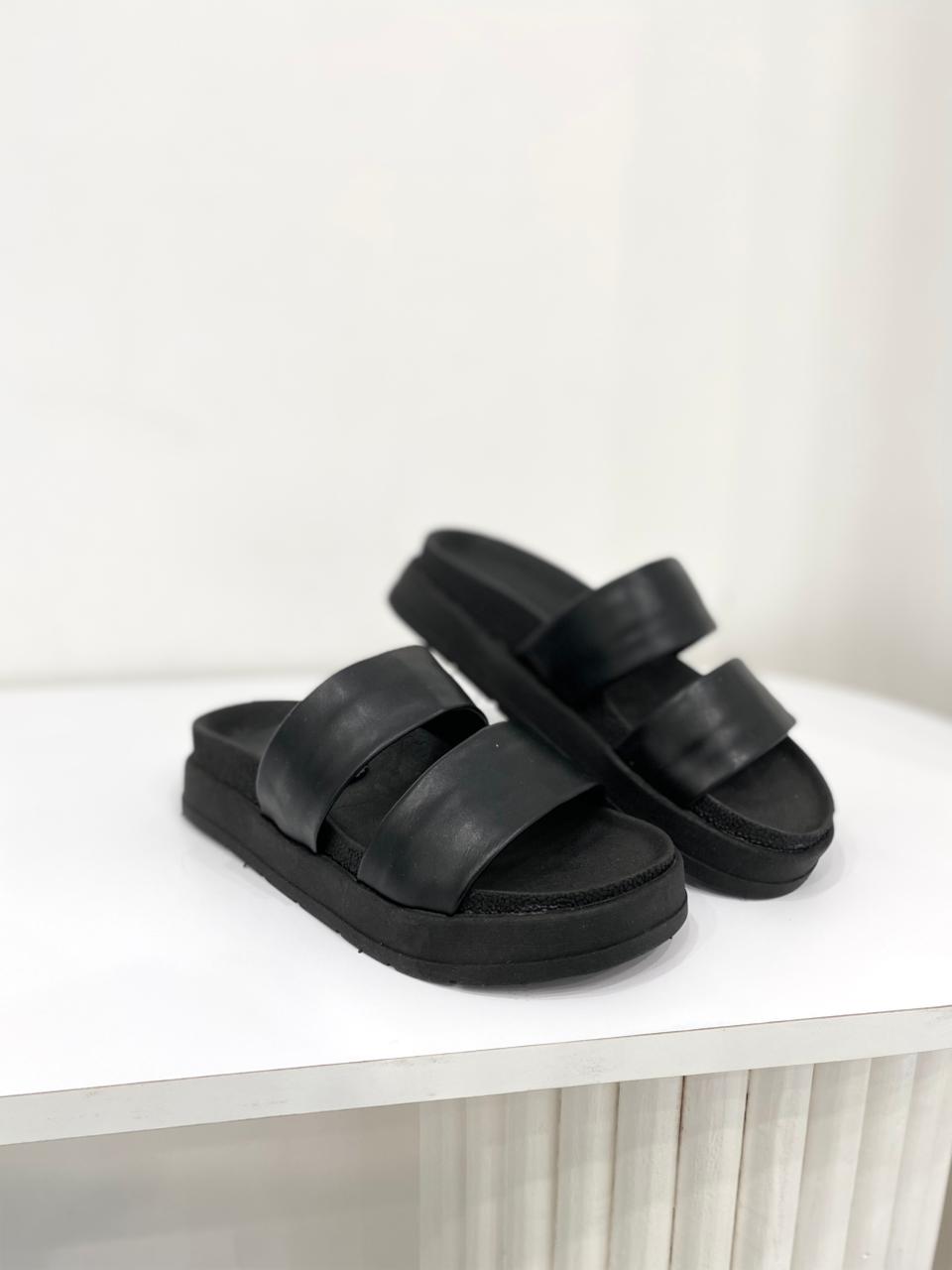 Chinela de ecocuero con tiras anchas y plataforma alta de goma.