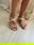 Sandalia importada con apliques dorados en tiras finas, plantilla acolchonada y mini taco y punta cuadrada.