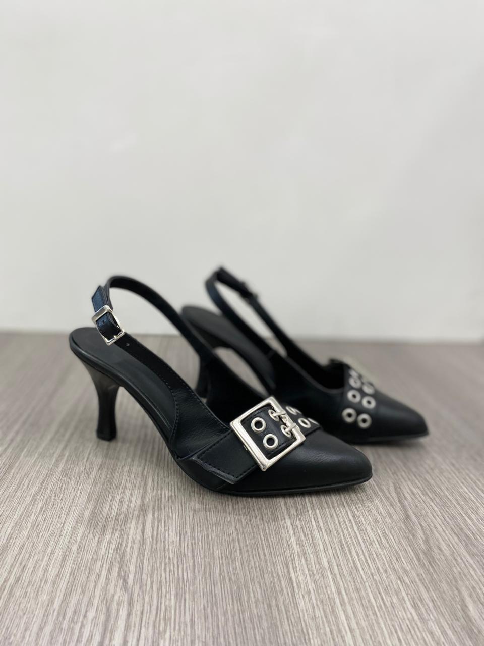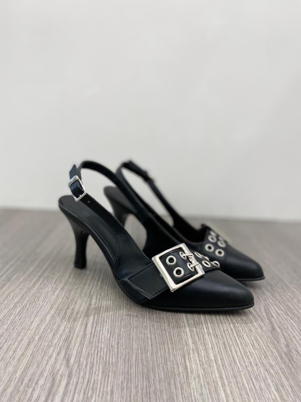 Sandalia cerrada con detalle de cinto.