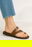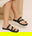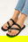 Sandalia de eco cuero con tiras y aplique dorado.