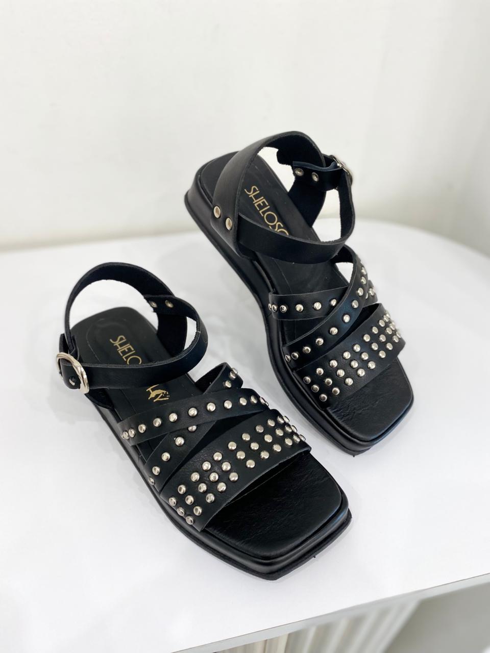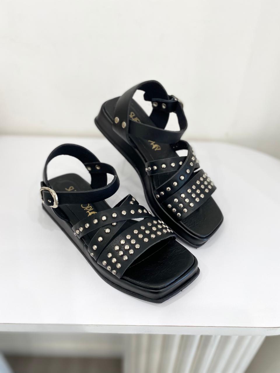 Sandalia de eco cuero con tachas.