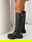 Bota de eco cuero con base goma, tiene detalles de cintos en plateado. Cierre a lo largo de la bota
