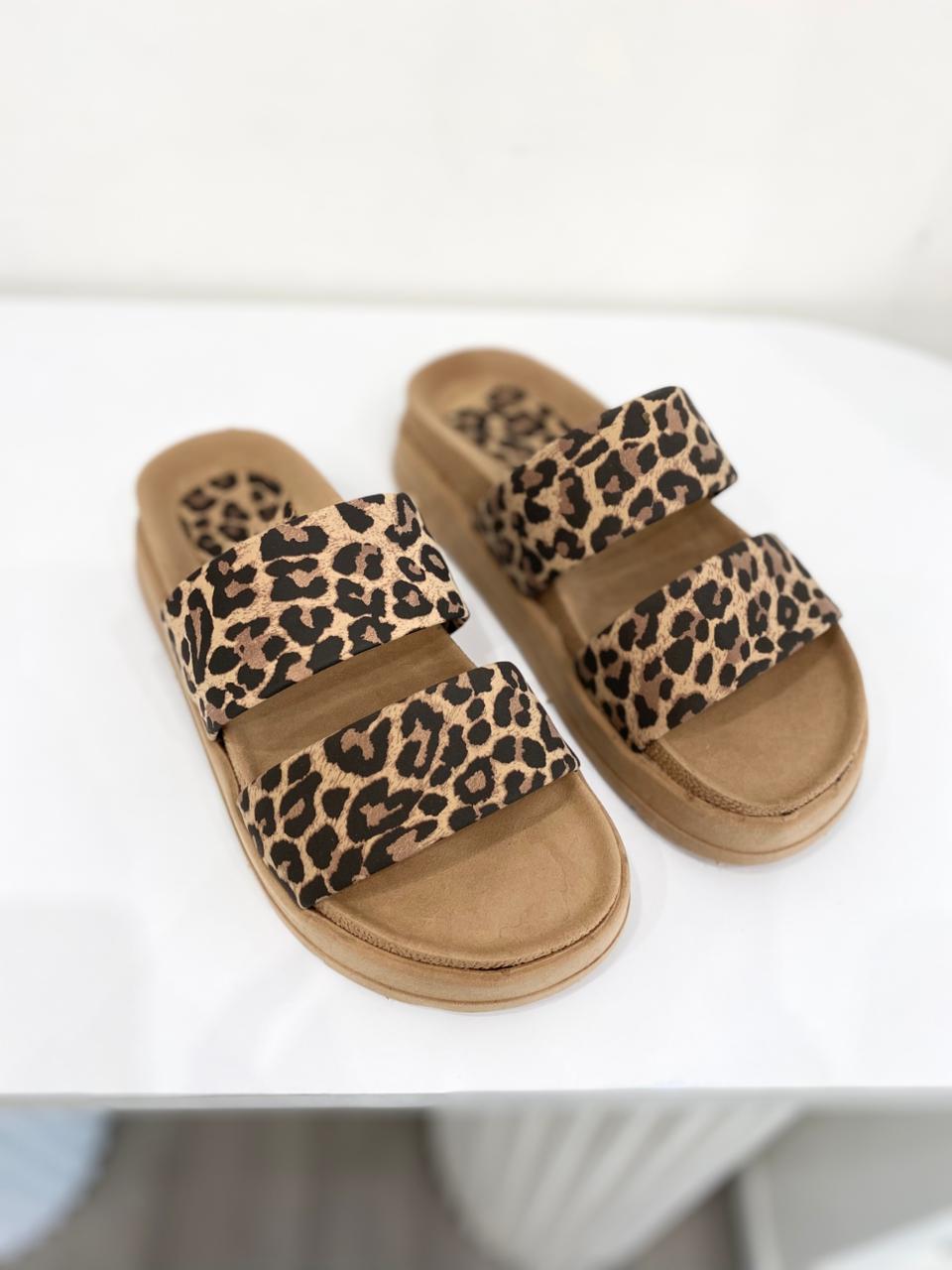 Chinela de ecocuero con tiras anchas y plataforma alta de goma.
