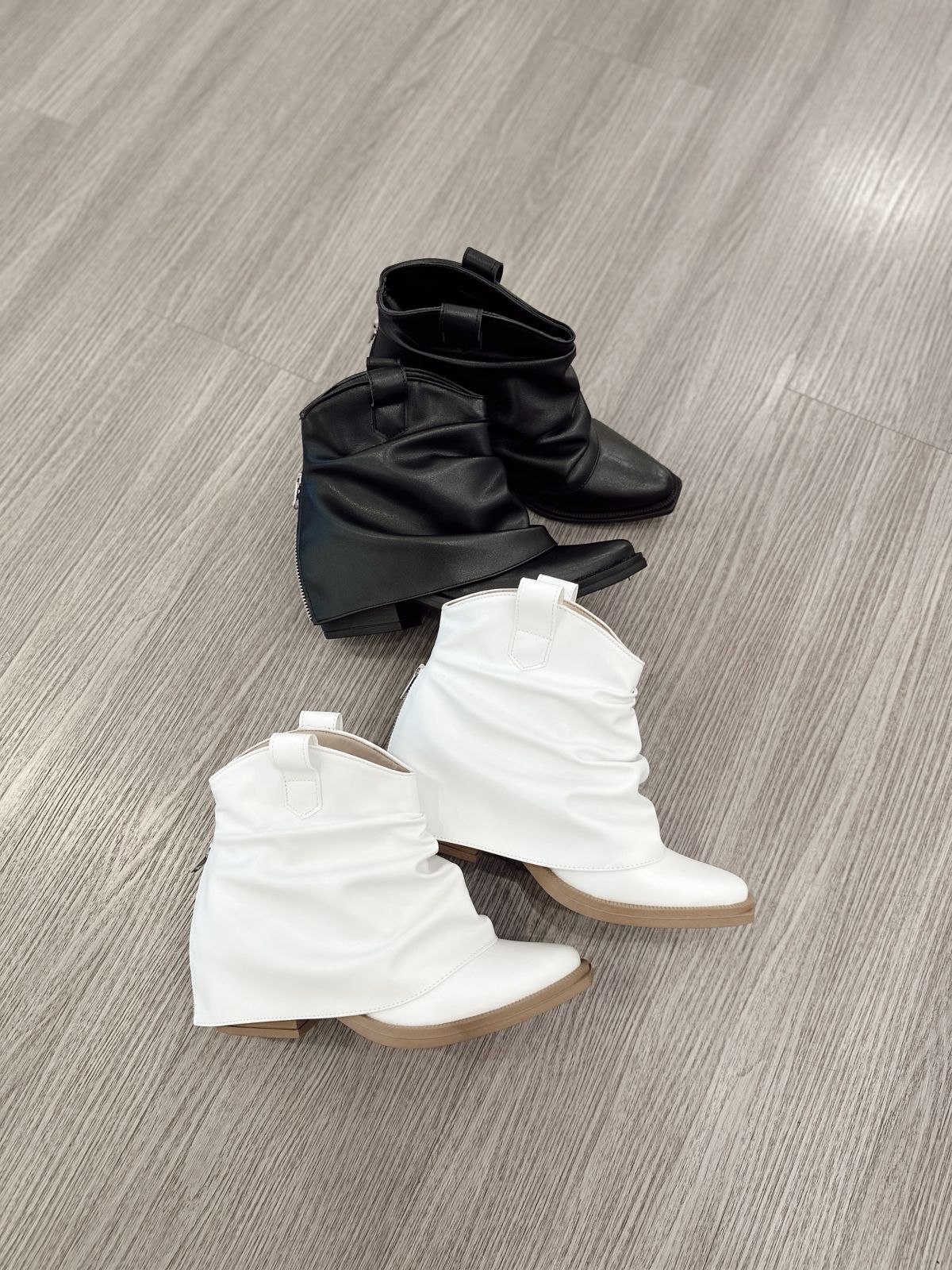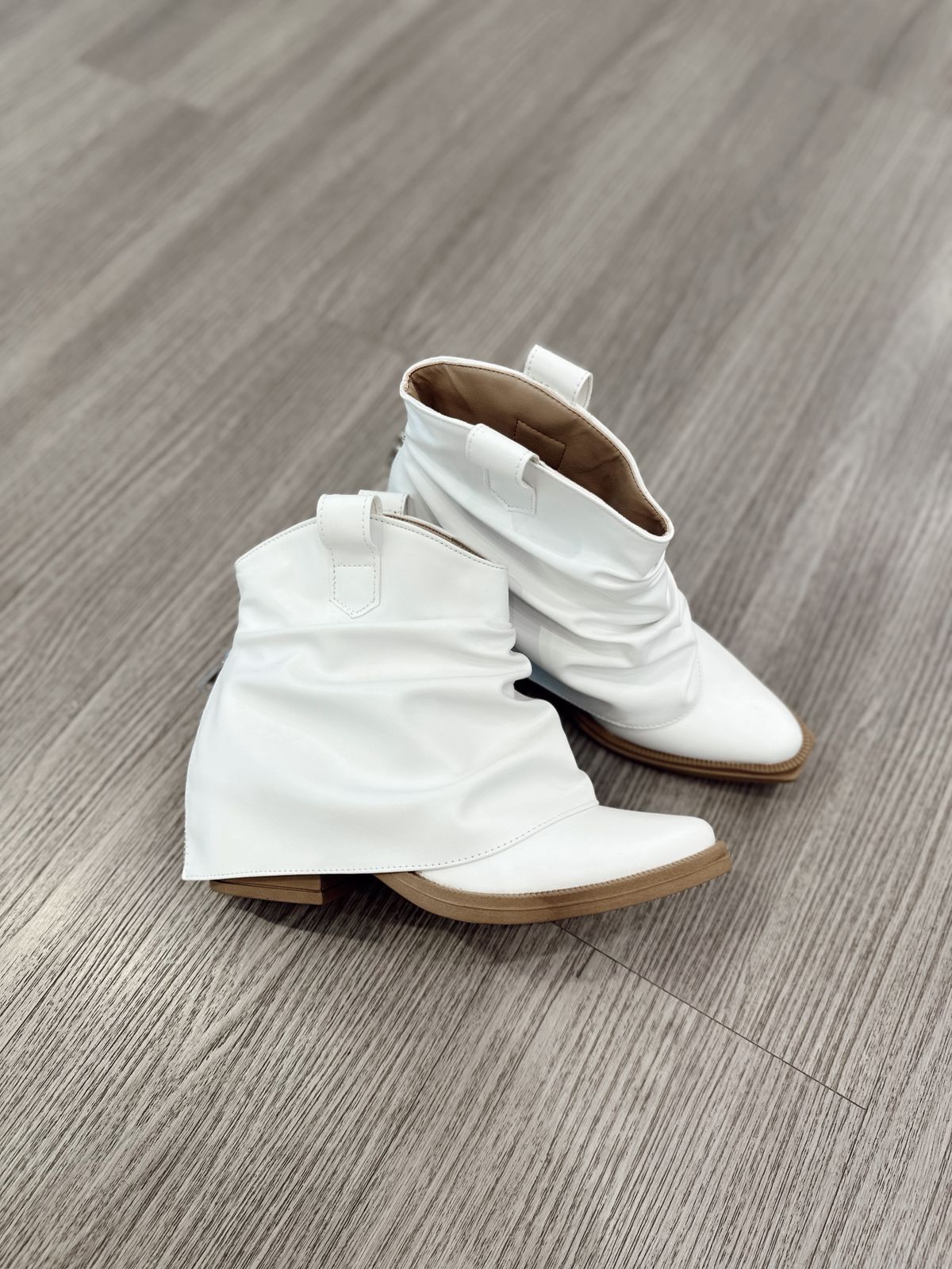 Texana de eco cuero con solapa arrugada y cierre. (no desmontable).