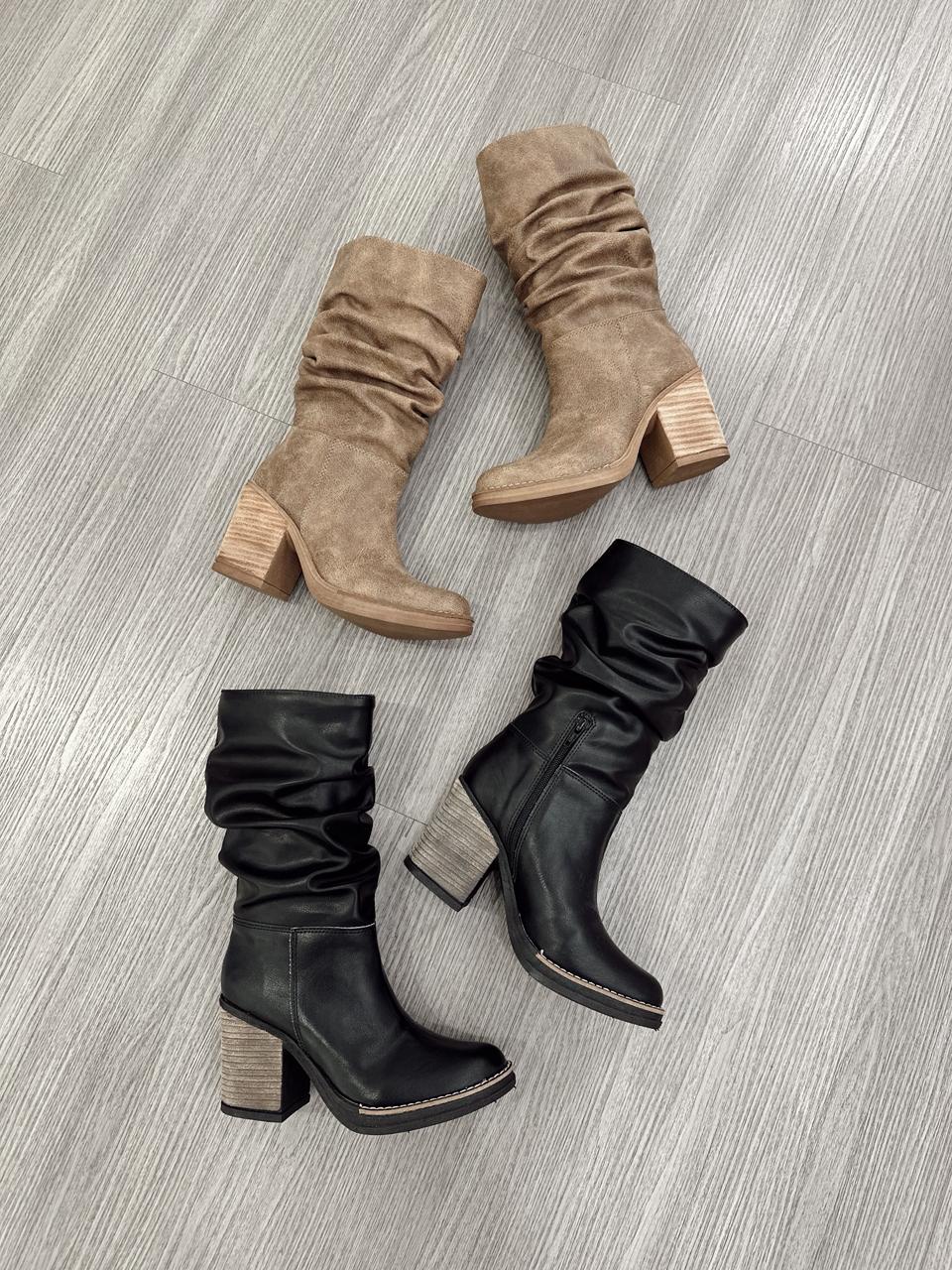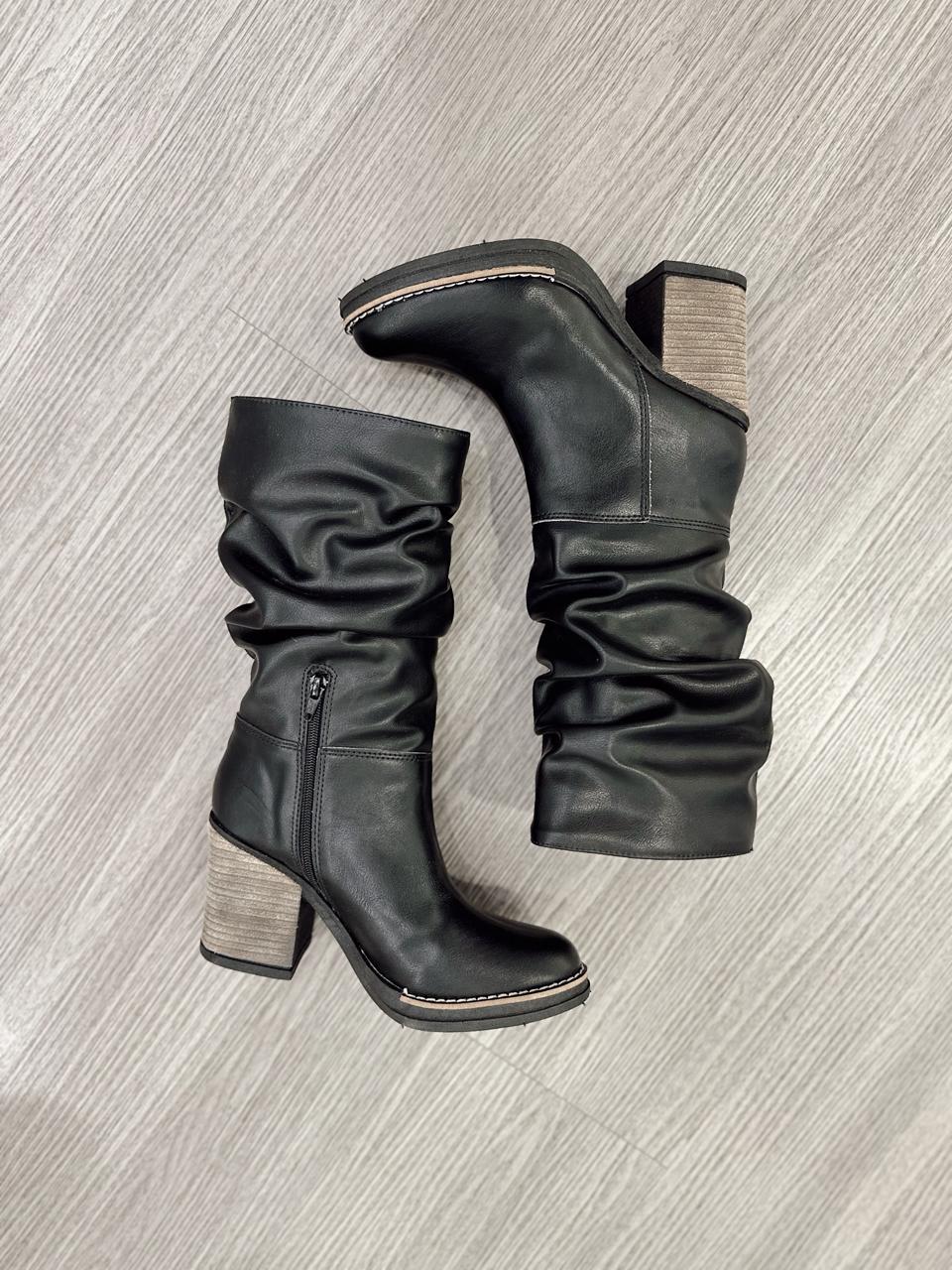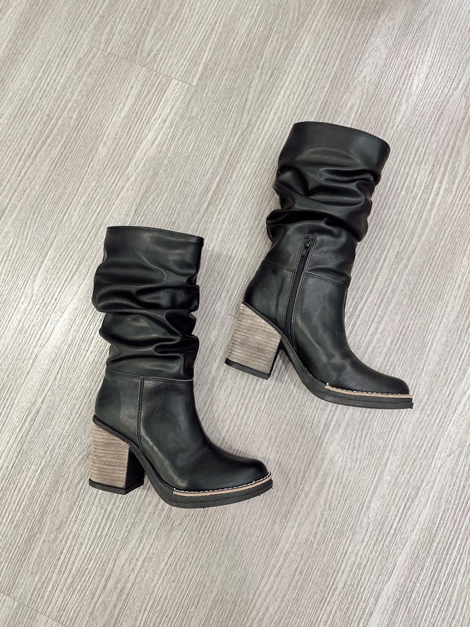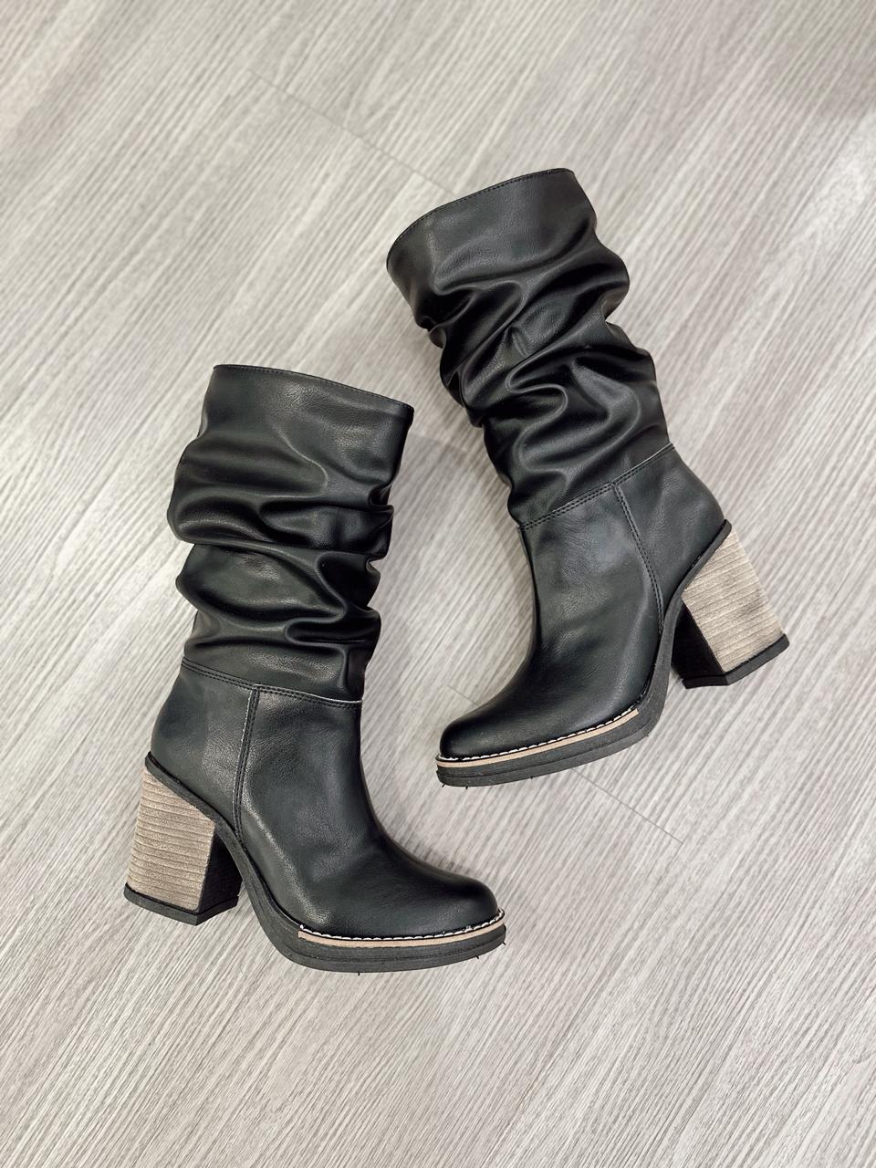 Botas de ecocuero con detalle de caña arrugada y medio cierre interno.